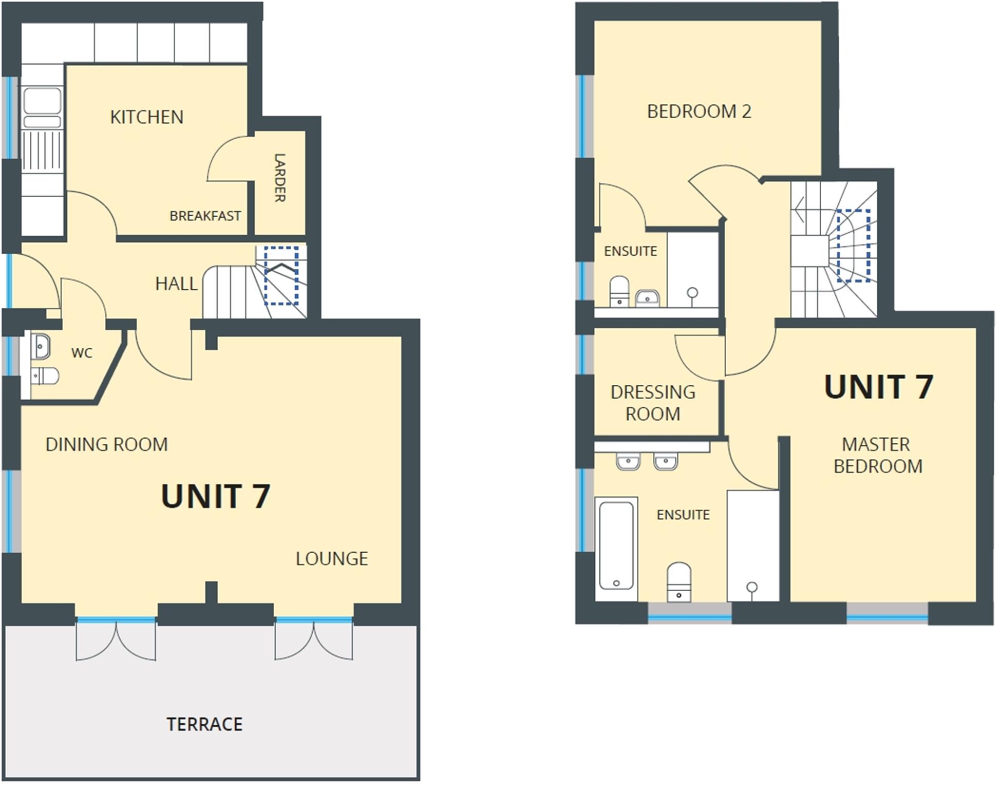 The first floor hosts two superb bedrooms both with en-suites featuring Porcelanosa wall and floor tiling. The master bedroom is a fantastic feature of the property and offers a separate dressing room, along with the spacious en-suite with both bath and walk in shower.