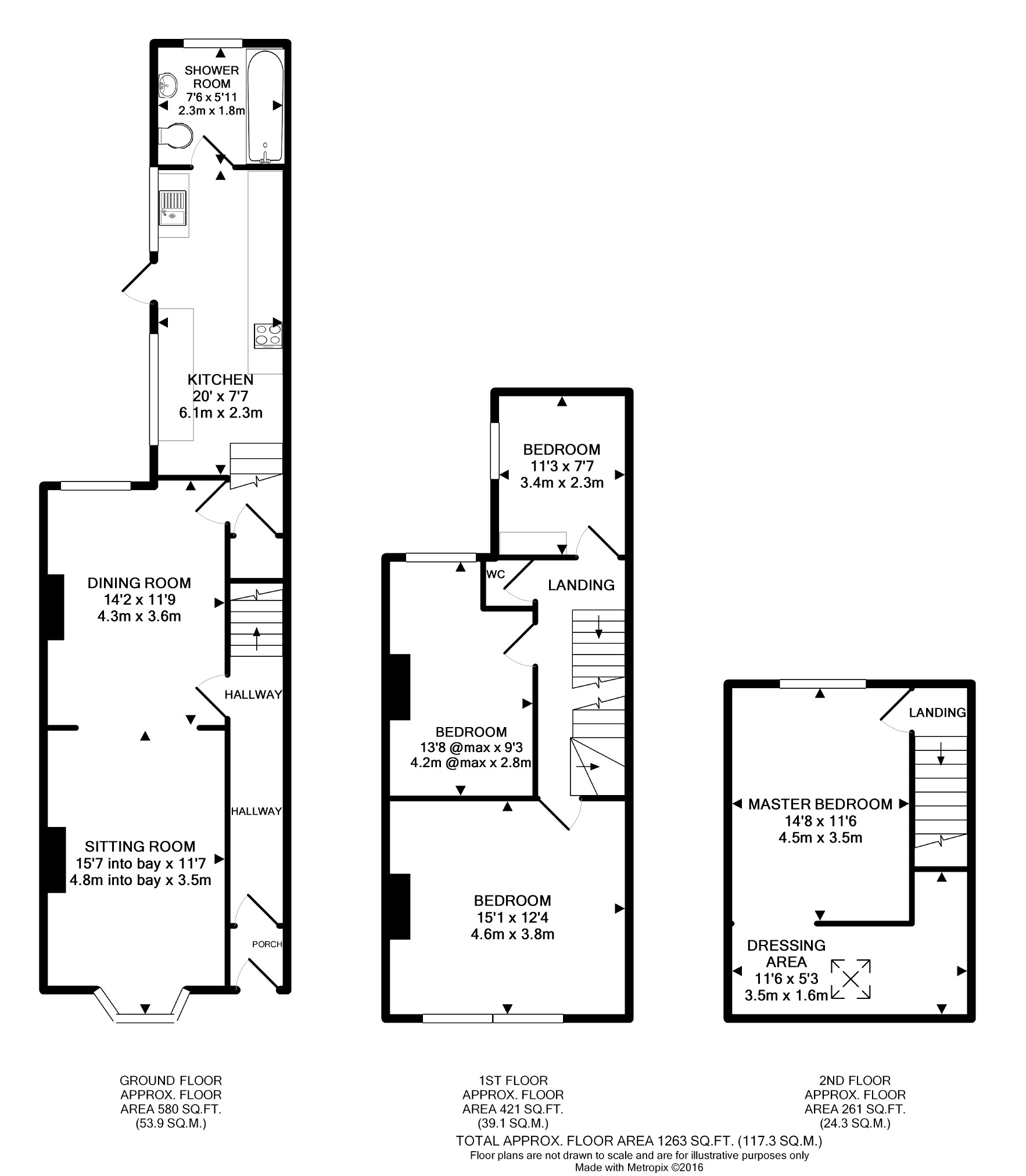 The 1st floor has 3 bedrooms and a toilet. The ground floor has a sitting room with bay window and feature fireplace, dining room, kitchen/breakfast room and a bathroom.