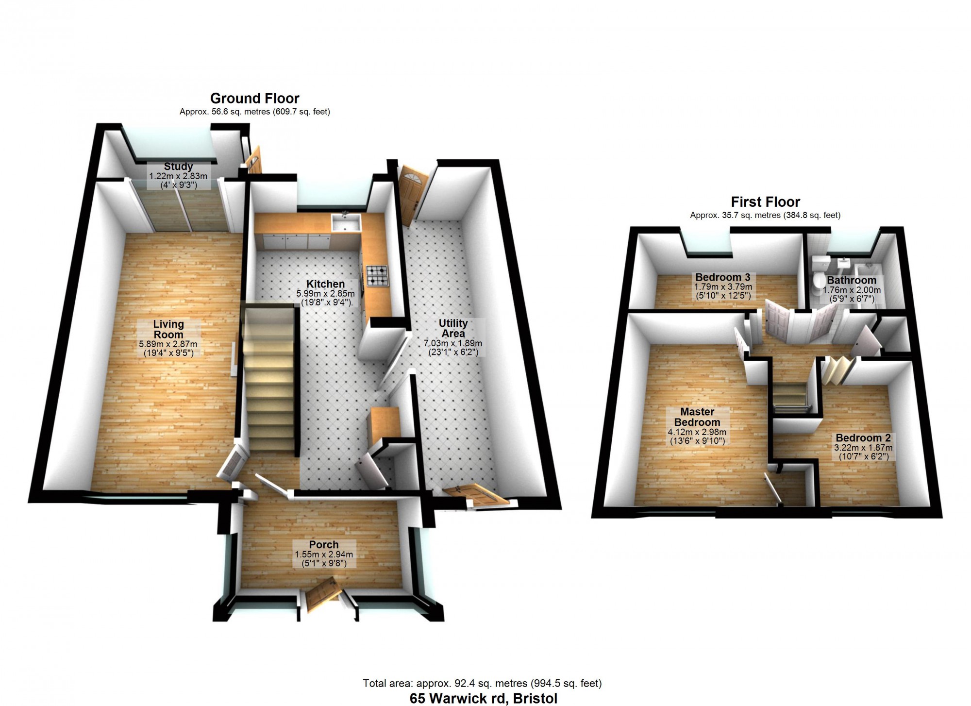 On entering Keynsham on the B3116 turn left on to Temple Street, continue on to Albert Road, at the top of Albert Road turn left on to Park Road and immediately left on to Queens Road, continue along Queens Road and turn left into Tenby Road and the left again into Warwick Road, number 65 can be found on the ? Hand side and is identified by an Eveleighs for sale board.