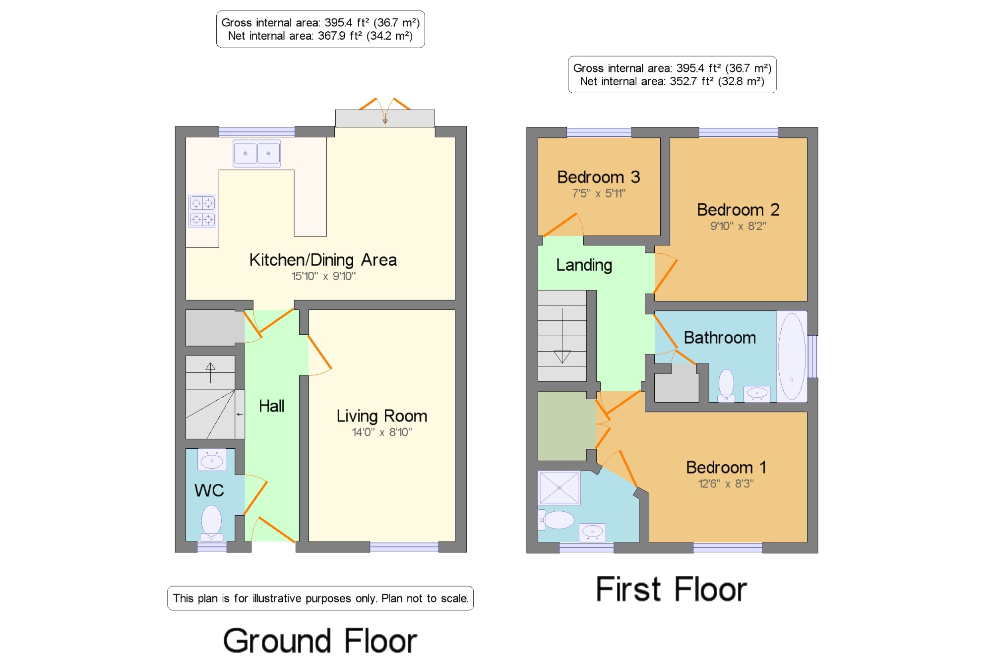 Bedroom 1 12'6" x 8'3" (3.8m x 2.51m). Double glazed uPVC window facing the front elevation. Carpeted flooring, radiator, ceiling light and built in wardrobes.