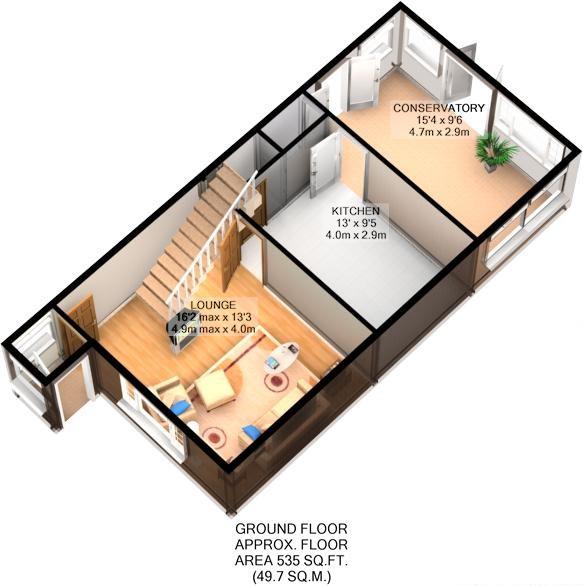 The ground floor comprises; porch, lounge, fitted kitchen, full width conservatory and a downstairs WC.