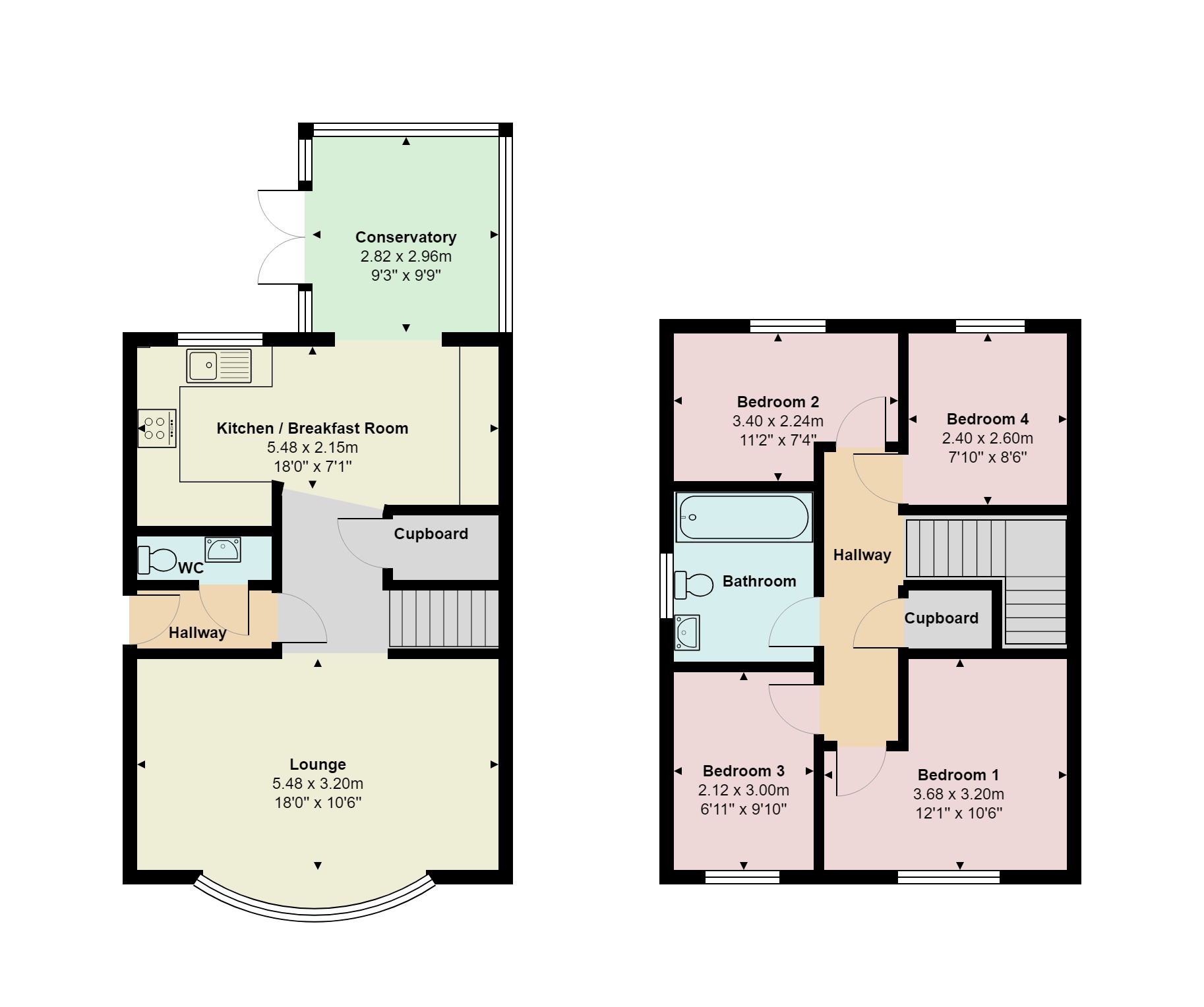 * Bedroom 4: 2.49m x 2.39m (8' 2" x 7' 10")