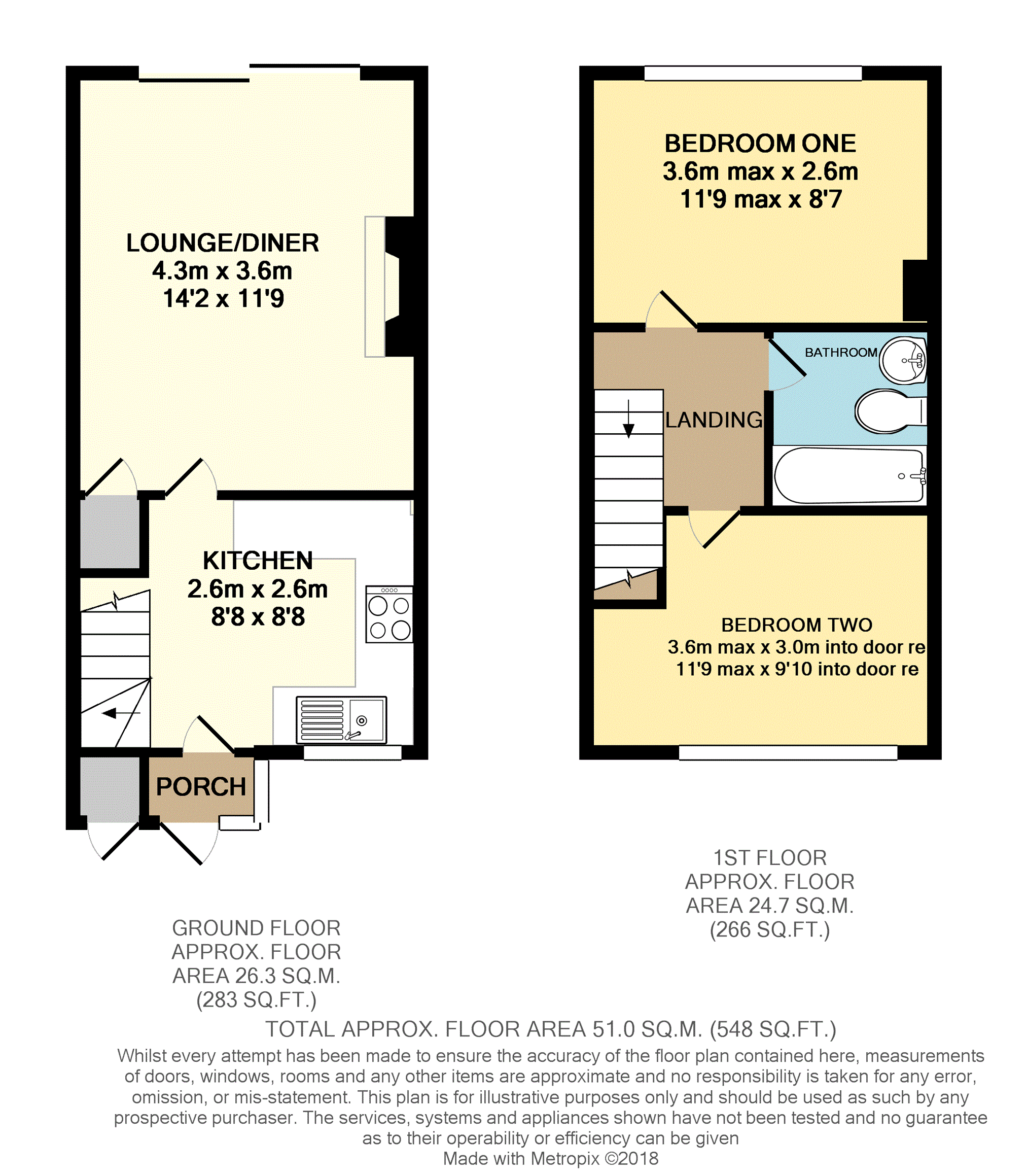 The accommodation briefly comprises of entrance porch, kitchen, lounge/dining room, first floor landing, two bedrooms and family bathroom. Externally the property has garden areas to both front and rear with external storage room to the front.