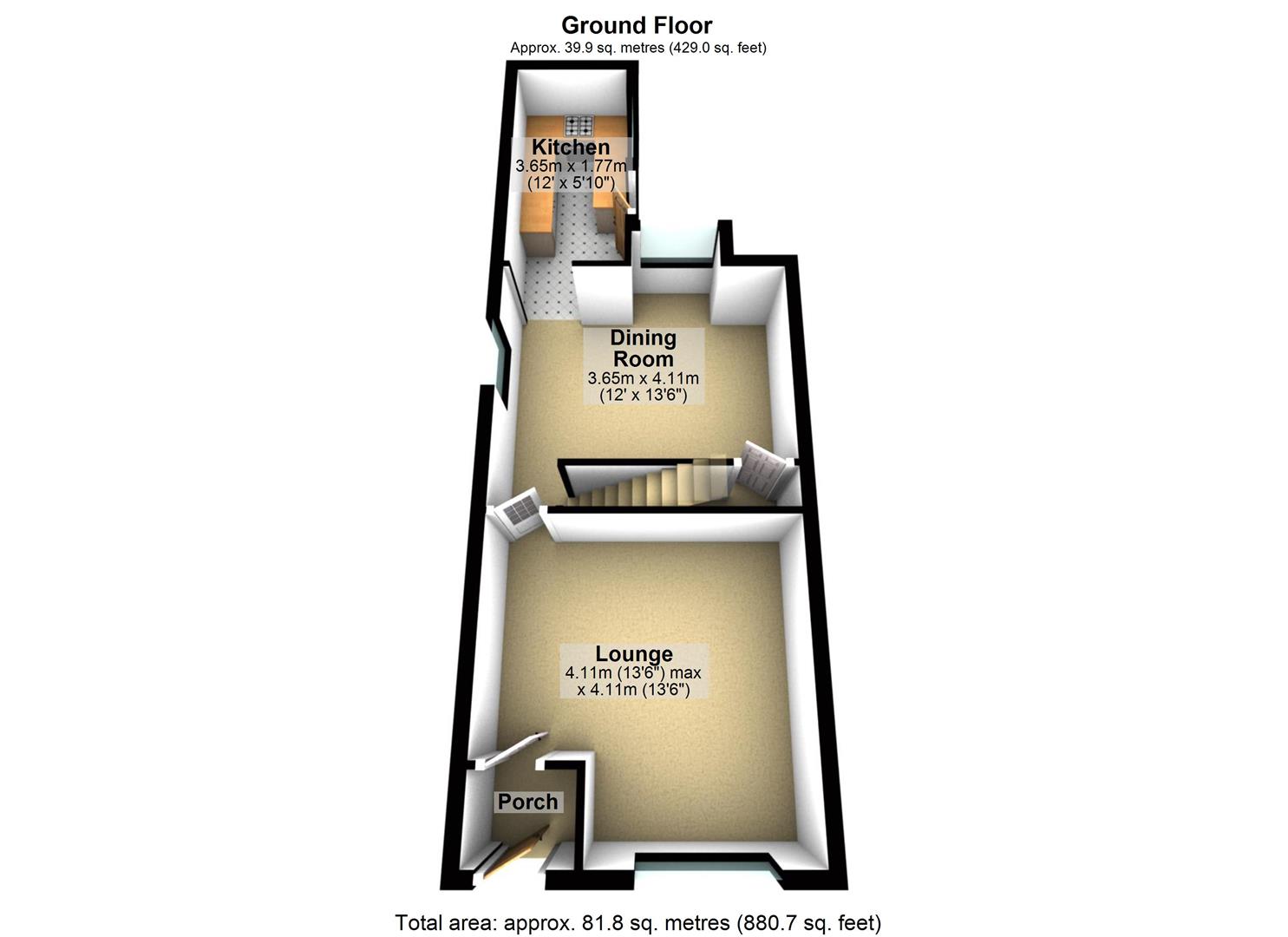 Upvc double glazed window to the rear and side elevation, door leading to under stairs storage cupboard and radiator.