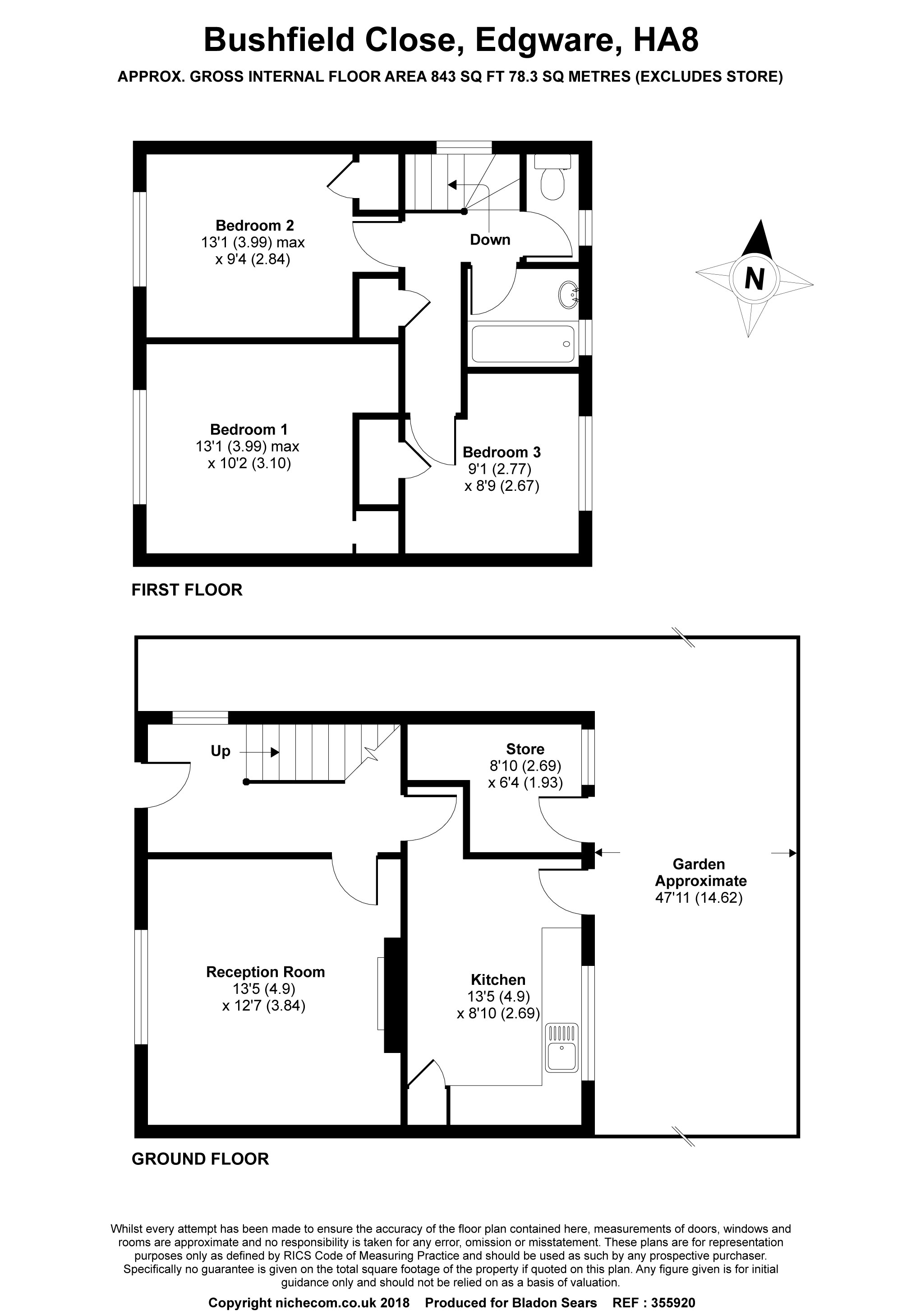approximate total internal floor area: 843 sq ft/78.3 sq metres (excludes store)