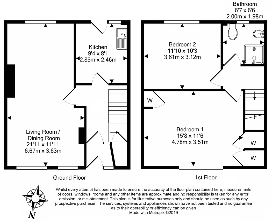 This property is now in need of complete renovation and in brief comprises; entrance vestibule, entrance hall with store cupboard housing the boiler and stairs taking you up to the 1st floor. The bright and spacious dual aspect living/dining room is downstairs along with the kitchen. The kitchen has a range of wall and base units and direct access to the back garden. Upstairs there are two good size bedrooms, the master to the front with 3 store cupboards and the other to the rear overlooking the garden. The wood panelled showerroom has a 3 piece suite and completes this property.
