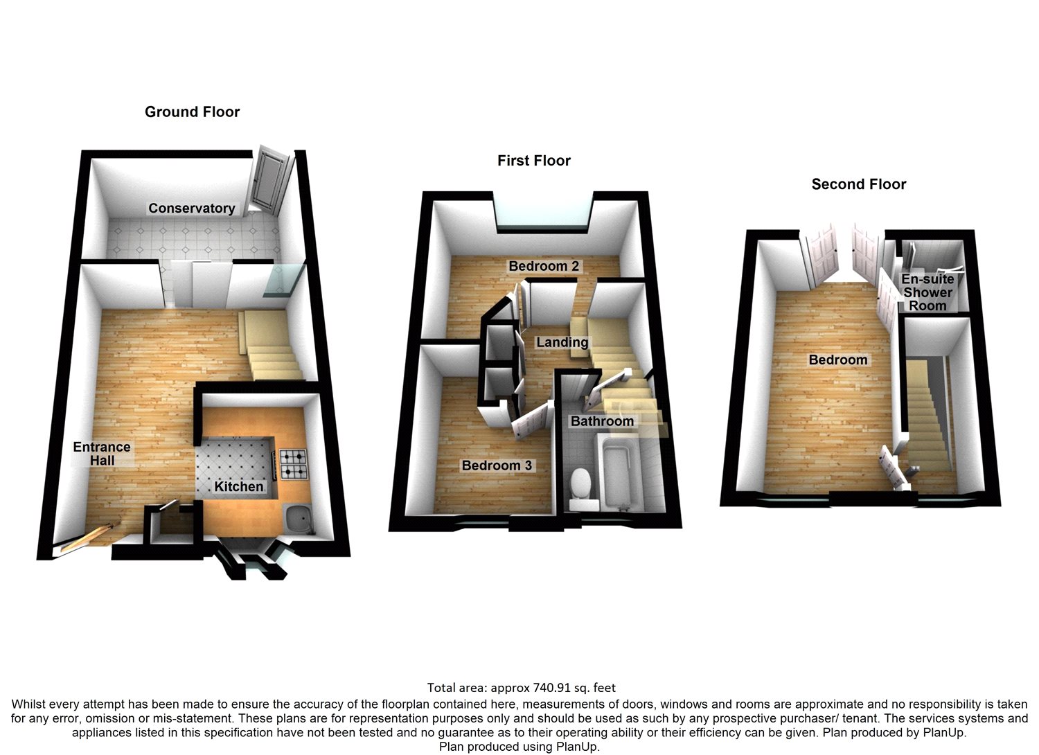 Opaque door. Double glazed window to rear. Three piece bathroom suite comprising: Corner shower cubicle with shower over, fully tiled walls and sliding doors, inset wash hand basin with mixer tap & vanity unit under, Low level wc. Tiled walls and flooring. Extractor.