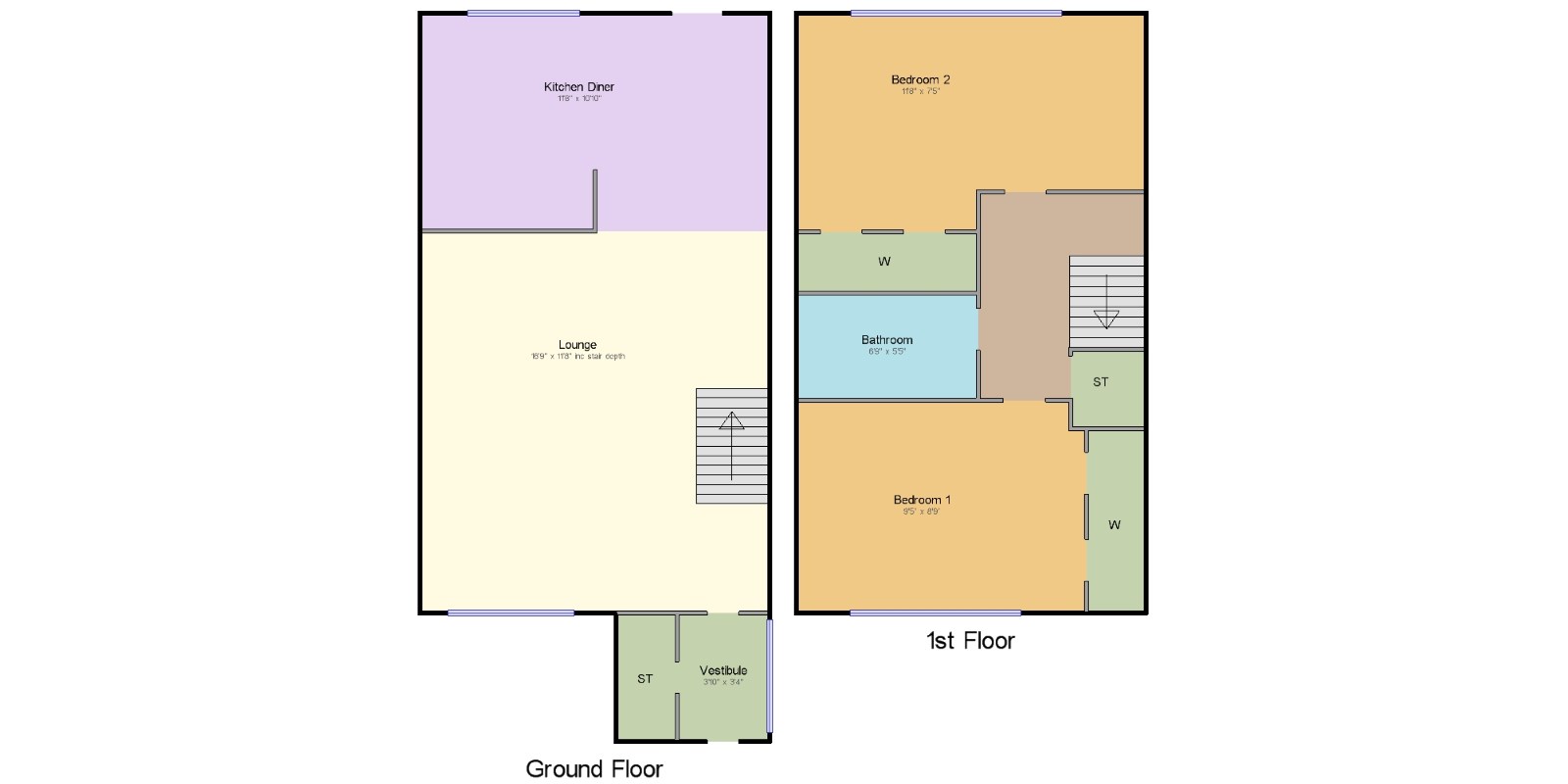 Bedroom 19'5" x 8'9" (2.87m x 2.67m).