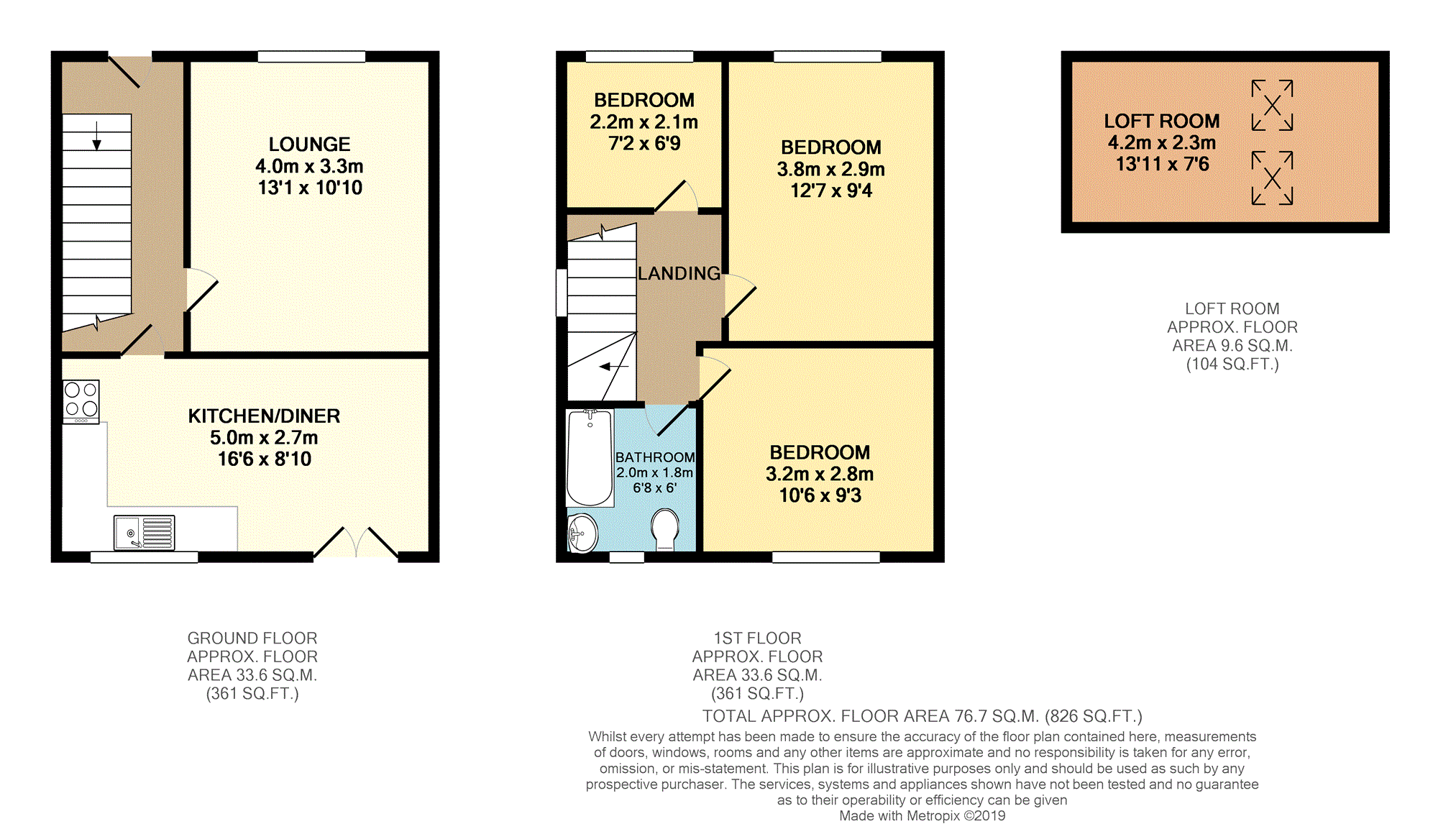 The property briefly comprises: Large kitchen/diner, lounge, first floor landing leading to two double bedrooms, single bedroom, ladder access to loft bedroom, and family bathroom.