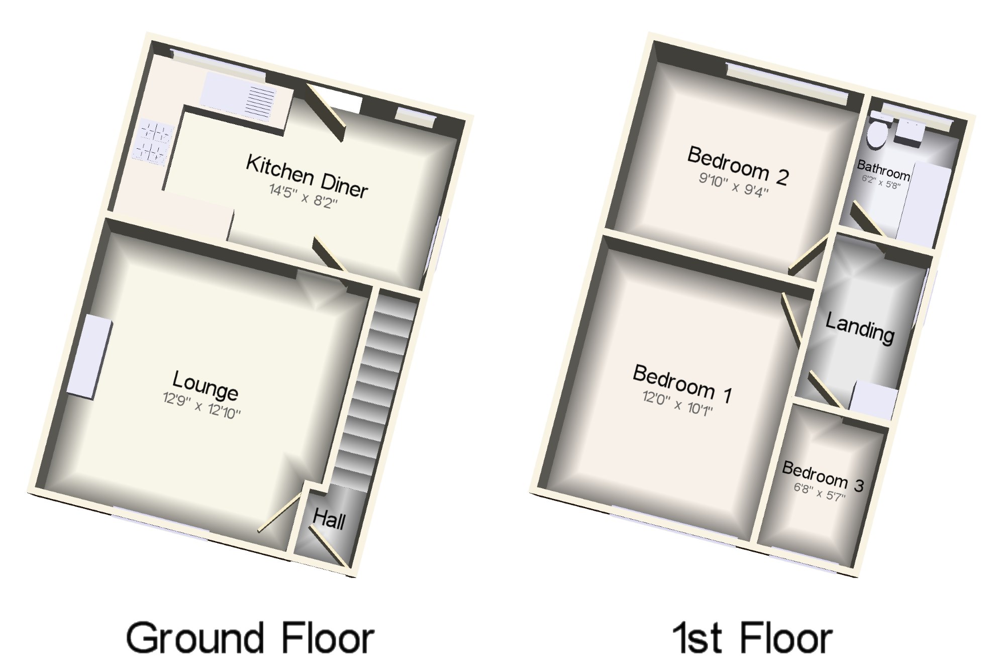 Lounge12'9" x 12'10" (3.89m x 3.91m). Double glazed uPVC window facing the front overlooking the garden and valley. Radiator and electric fire, carpeted flooring, original coving and ceiling light.