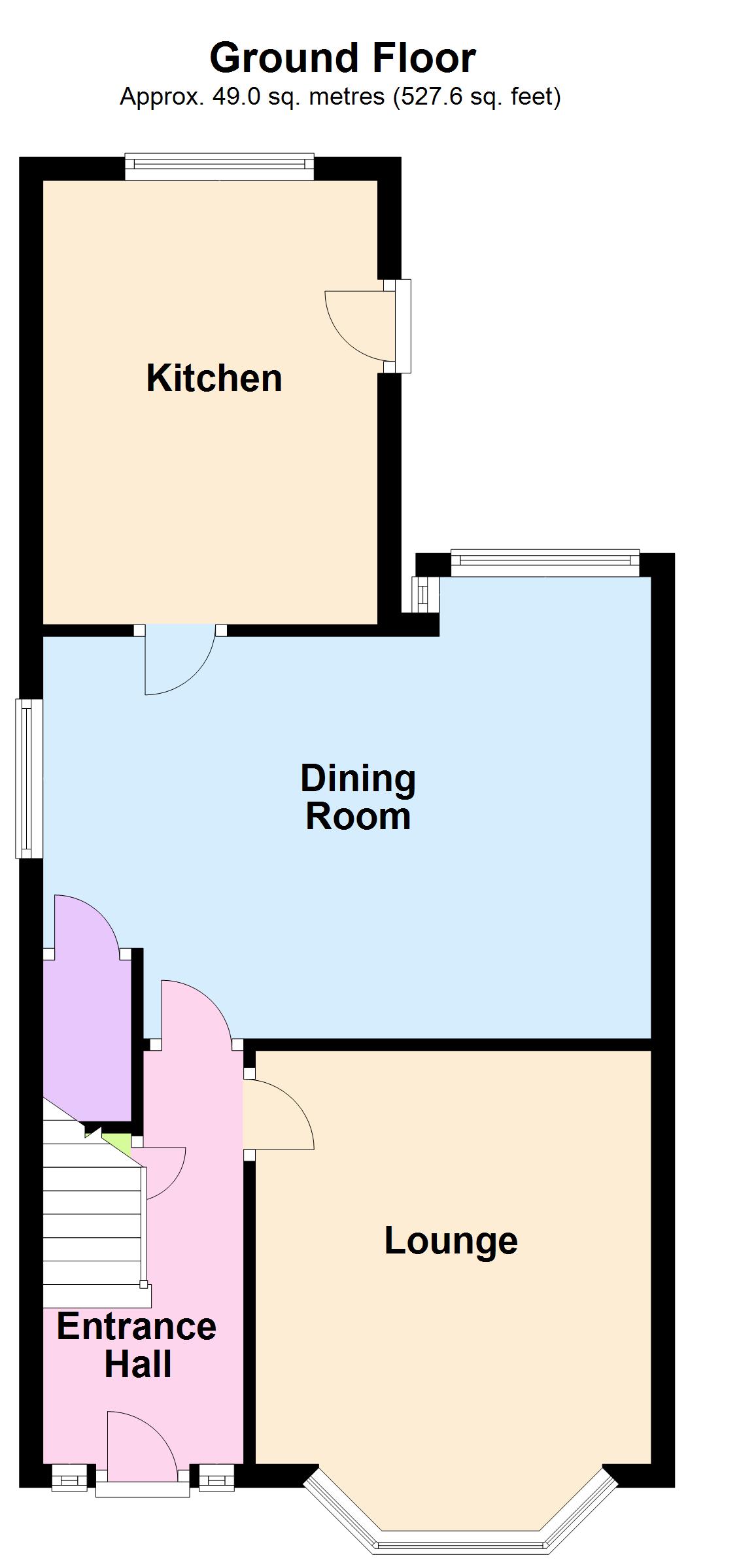 UPVC double glazed door, stairs to the first flooor, solid oak flooring, central heating radiator.