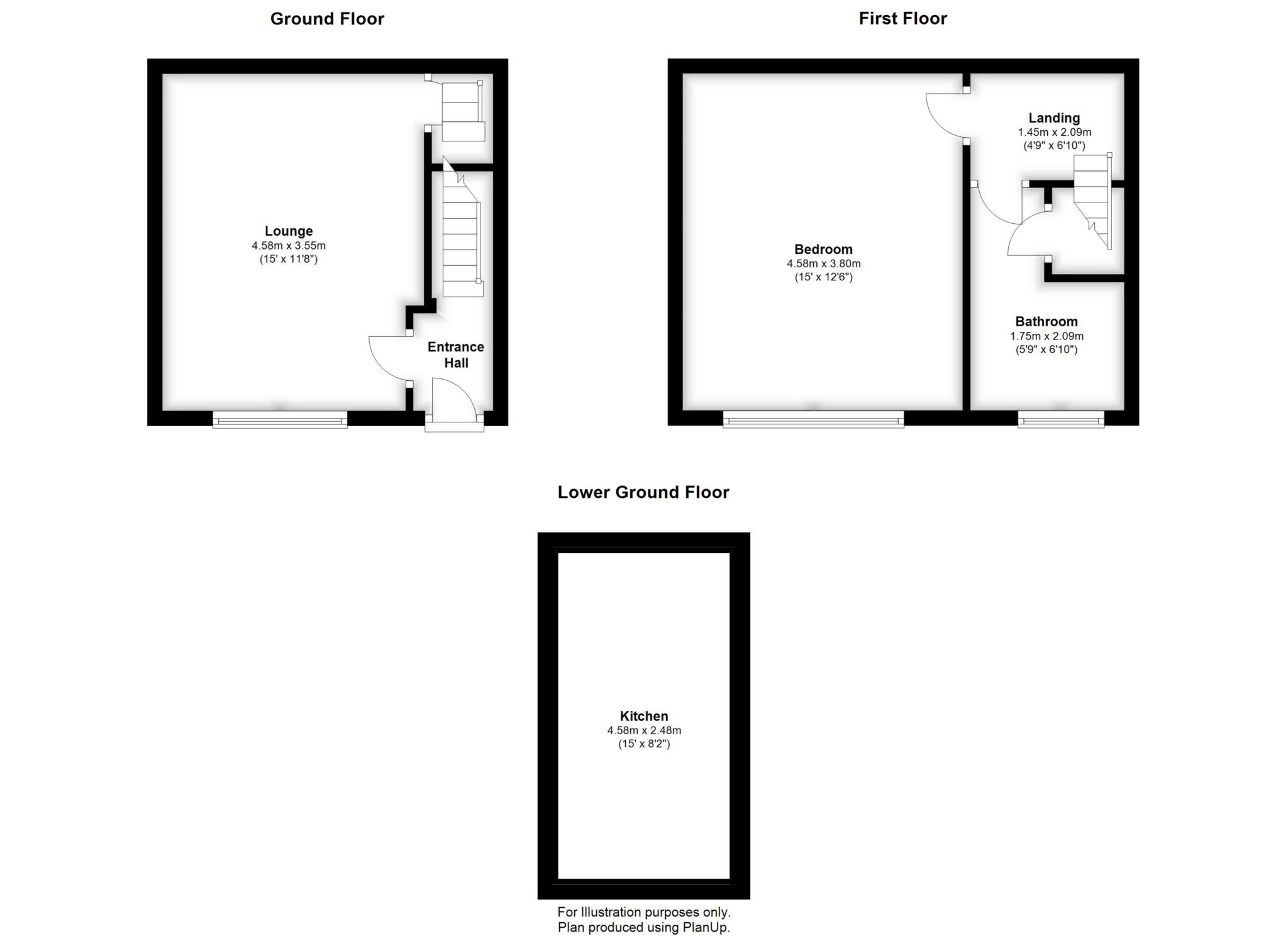 On the first floor is a good sized double bedroom which has a feature cast iron fireplace with a window to the front of the property. There is also a newly fitted bathroom with a 3 piece white suite, overhead electric shower and storage space. This light and spacious bathroom is partially tiled with pale marble effect tiles and has a glass shower screen and laminate flooring.
