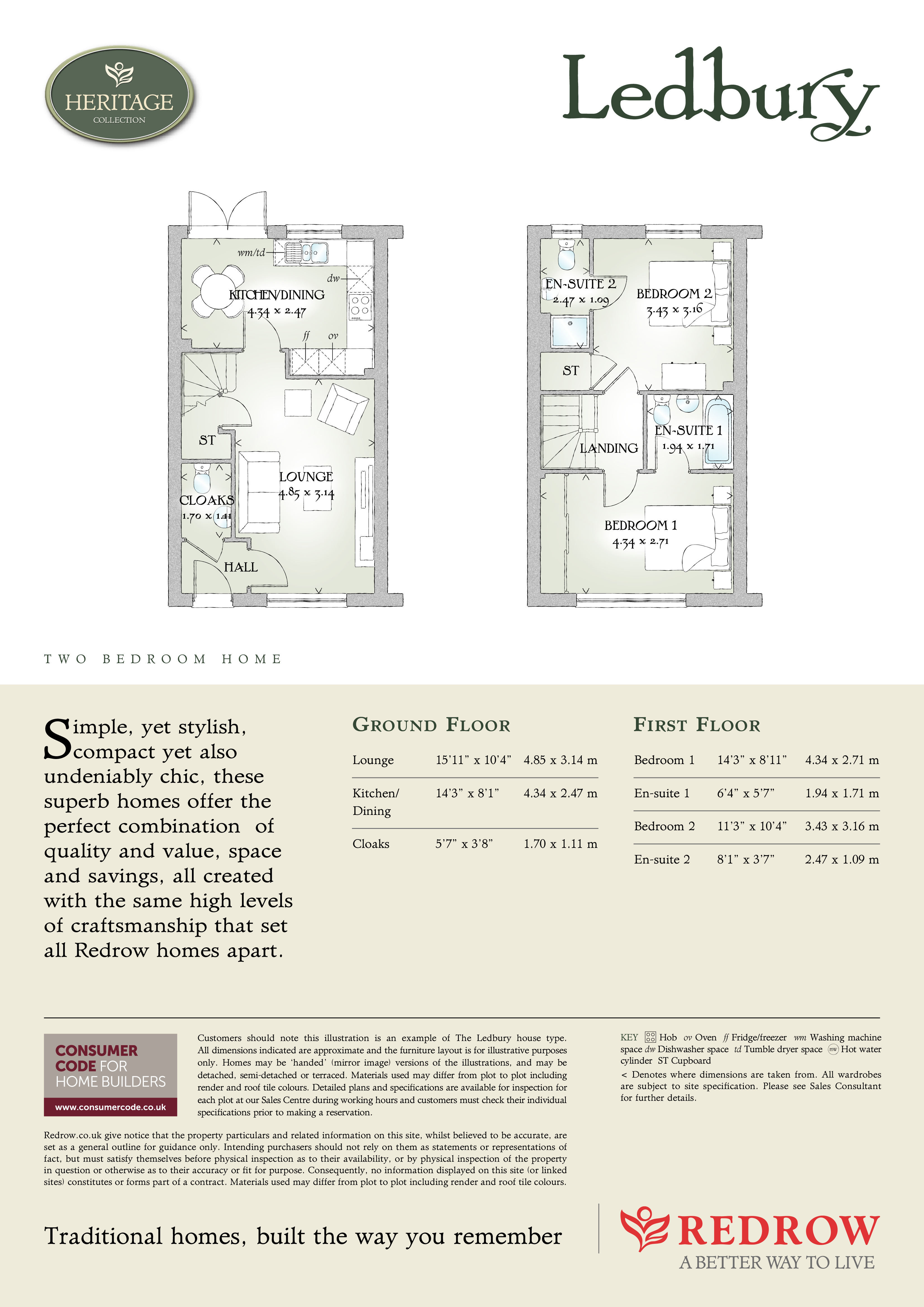 Simple yet stylish, compact yet undeniably chic, The Ledbury is a two bedroom home quite unlike any that you have seen before. Redefining the concept of the two-up-two-down, this home enjoys a spacious lounge, open plan kitchen/dining room and cloakroom downstairs. Upstairs there are two double bedrooms with en-suites to both adding an elegant touch of luxury.