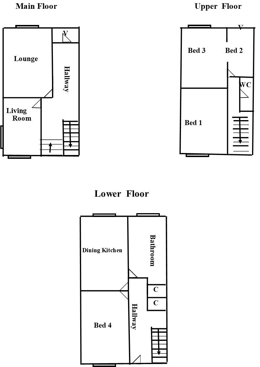 (Approx. 1.28m x 1.18m) Leading to Bedrooms 1,2 and 3 as well as W.C.