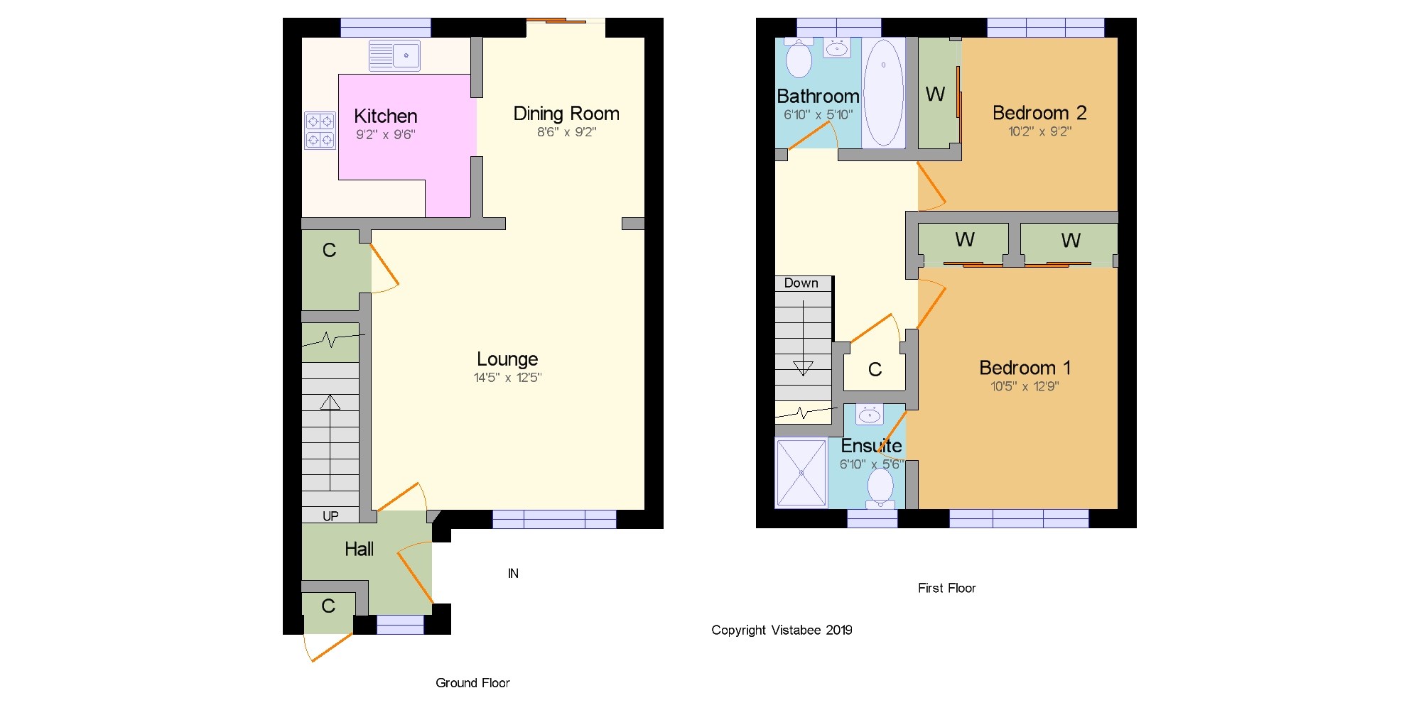 The accommodation comprises reception hall, large lounge, dining room with patio doors and modern fitted kitchen. Upstairs there are 2 double bedrooms (master with en suite shower room) and bathroom.