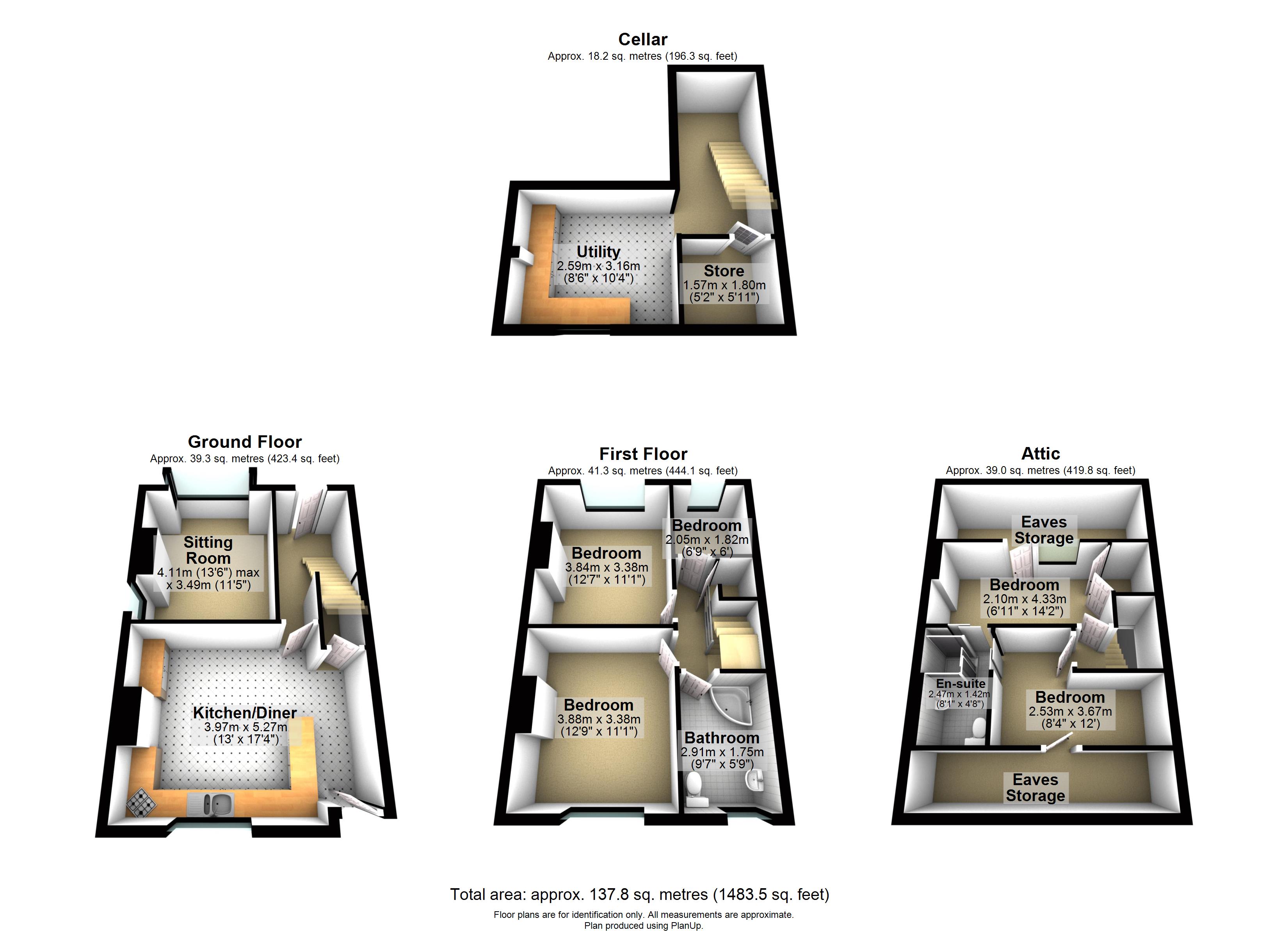 Carpeted landing with doors leading to three first floor bedrooms, the family bathroom and the staircase leads up to the second floor attic level.