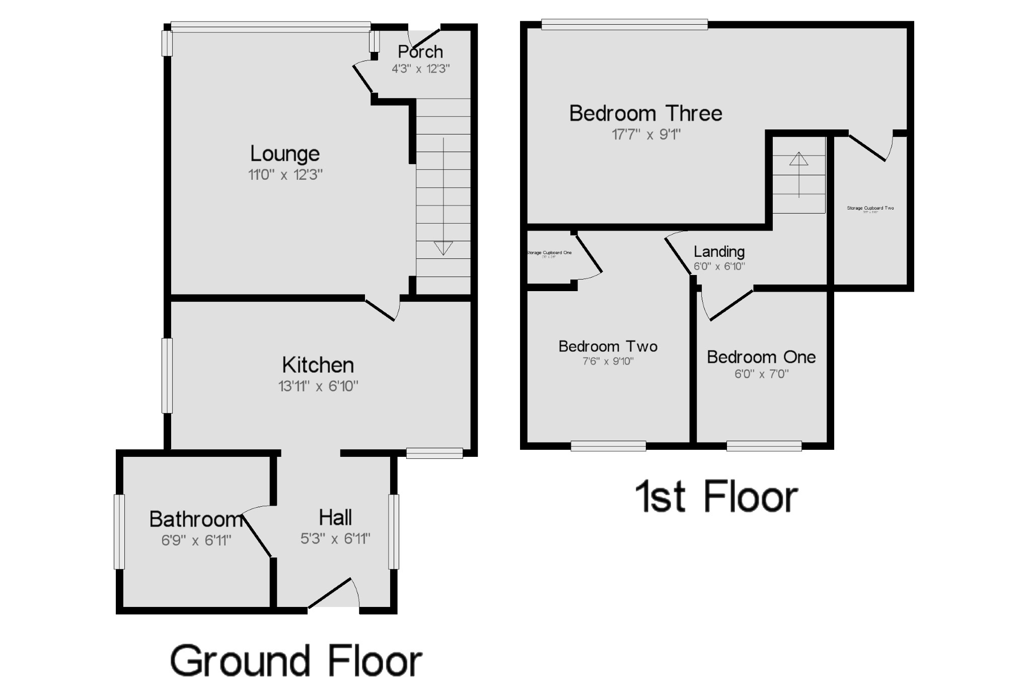 Storage Cupboard Two 3'5" x 6'10" (1.04m x 2.08m).