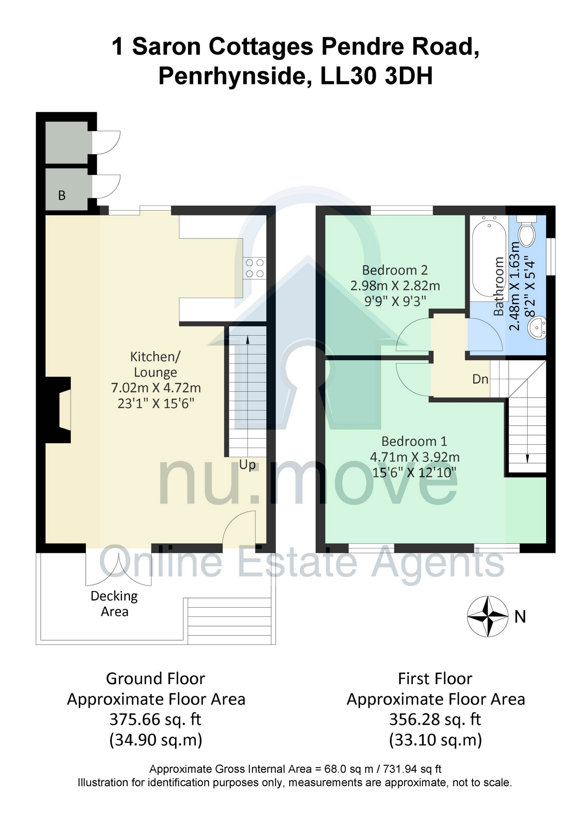To the first floor: Two Double Bedrooms and Bathroom.