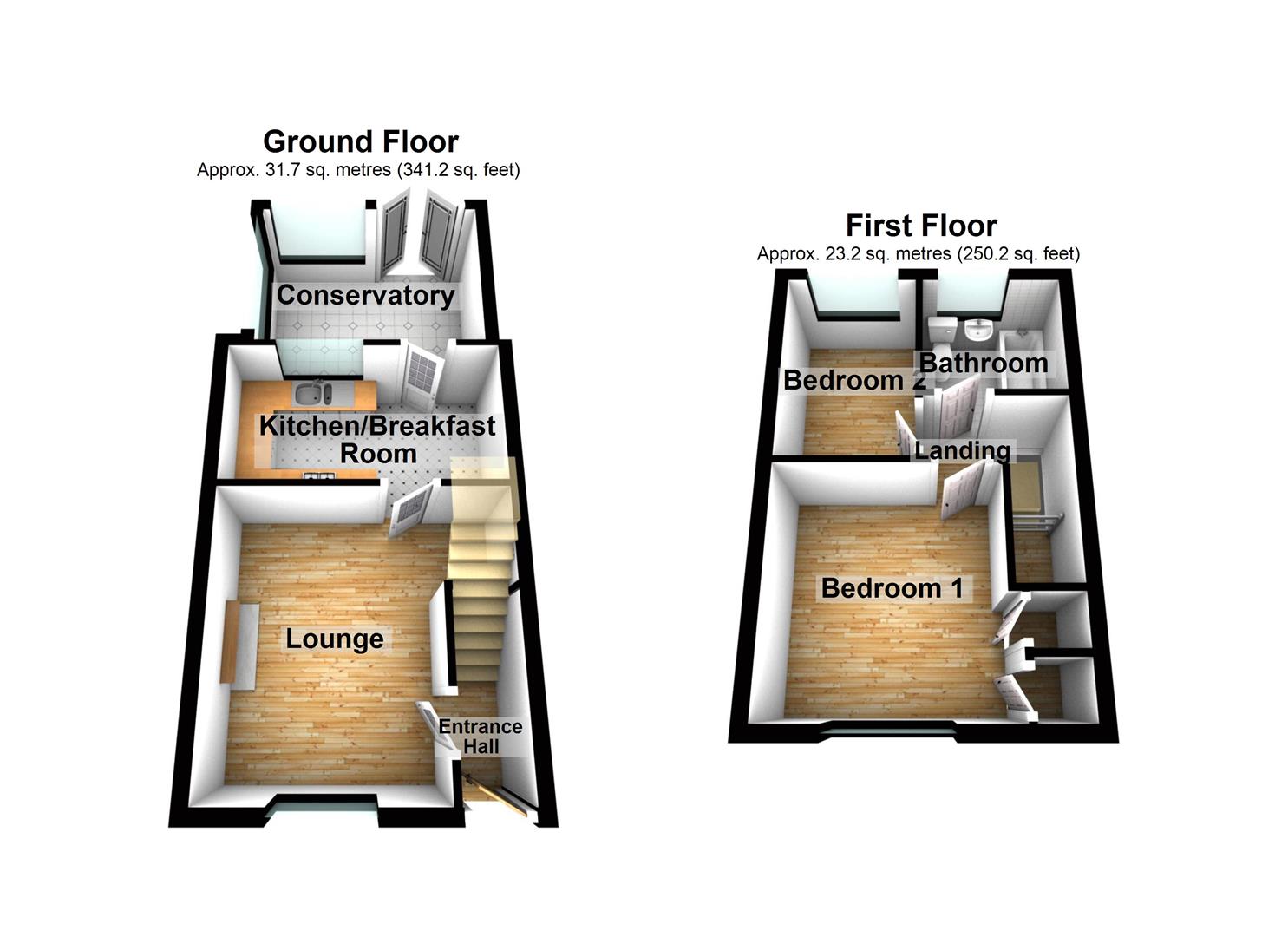 Move straight in to this two bedroom end terrace property with no upward chain and the added bonus of A lovely conservatory to the rear. Boasting generous off road parking this starter home is a must view for first time buyers or investors seeking a great opportunity to add to their property portfolio. The kitchen includes a range of wall and base units and additional space for a breakfast table and the lounge offers a great place to relax. With the addition of a conservatory the home creates space for a dining area or perhaps a playroom. The first floor offers a white contemporary suite with two bedrooms, the master bedroom includes built in storage cupboards. The enclosed rear garden is laid mainly to lawn with further lawn to the front of the home and side driveway offering tandem parking for two vehicles. EPC rating D.