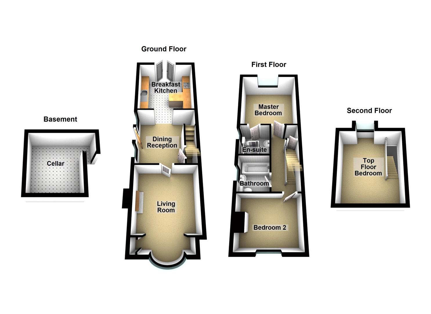 On the first floor a landing gives way to two bedroom with the en suite to the master and family bathroom. Radiator and stairs accessing the top floor.