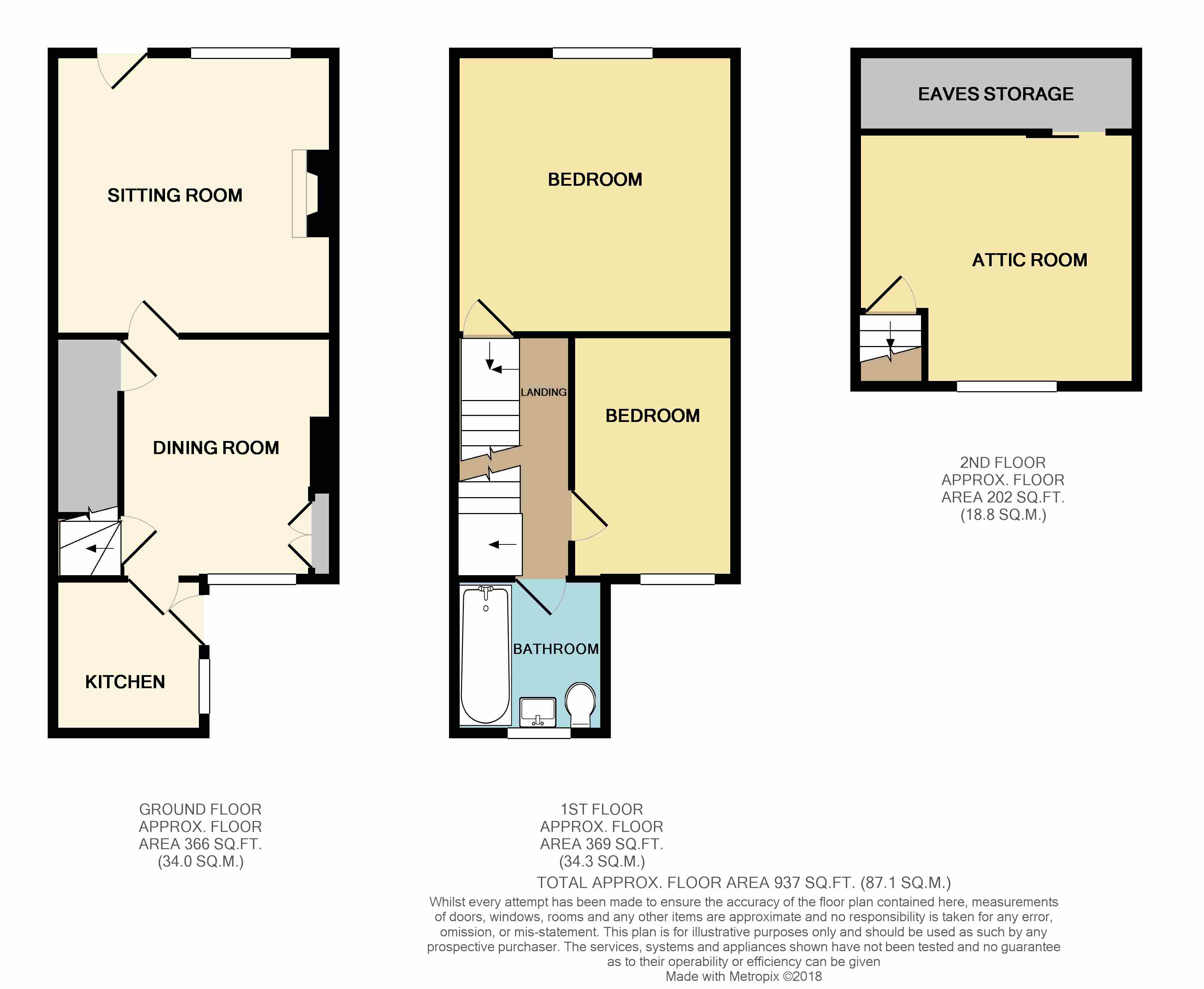 Bedroom 3 – 3.98m x 3.6m (13’ 1” x 11’ 10”) with restricted head height. Being of double proportion and having a rear aspect uPVC double glazed dormer window providing views over the rooftops, electric heater and eaves storage cupboard.