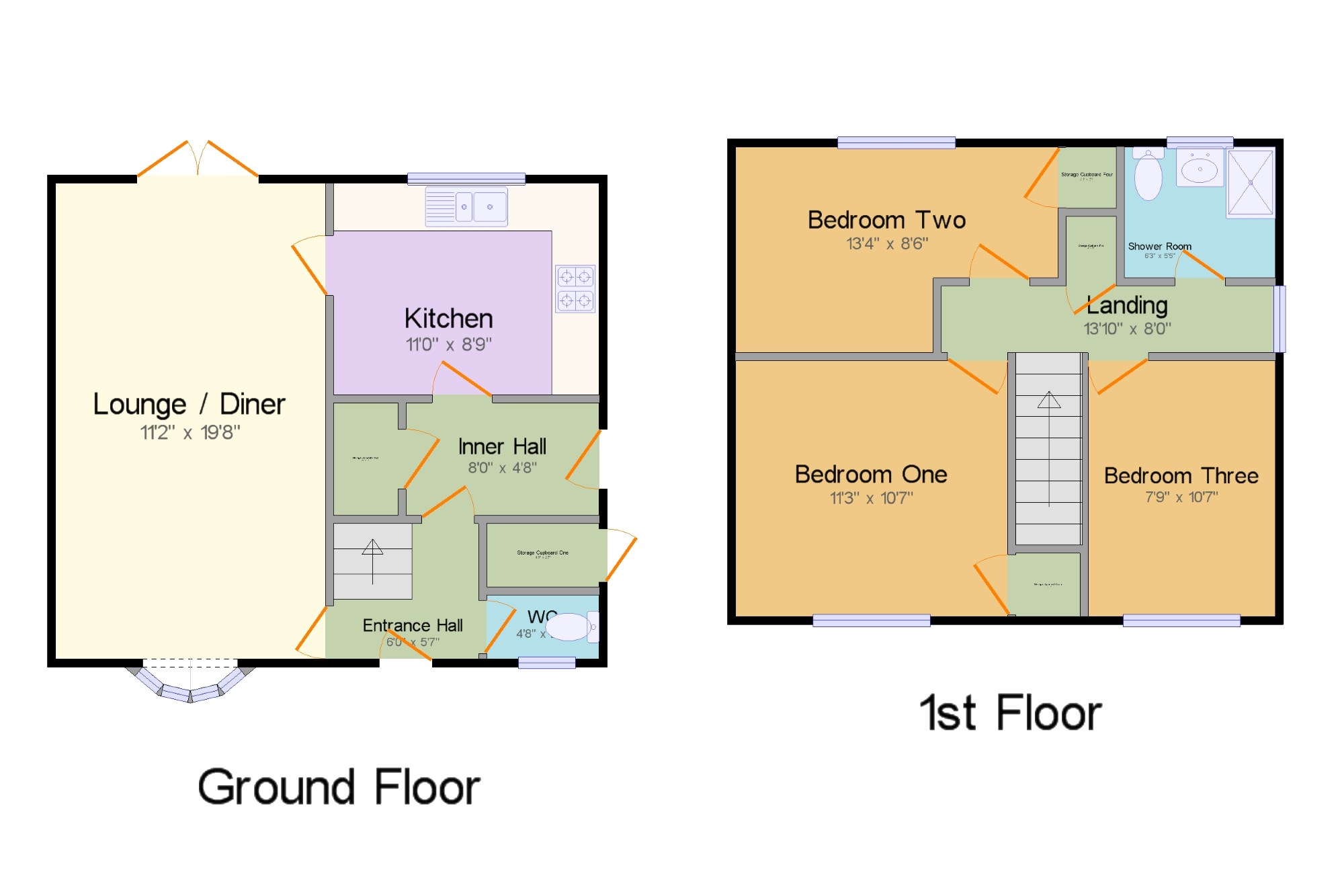 Bedroom Two13'4" x 8'6" (4.06m x 2.6m). Double bedroom; double glazed window facing the rear. Radiator, carpeted flooring, built-in storage cupboard.