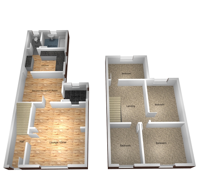 Good sized second reception room that has recently be plastered. Skimmed and coved ceiling with laminate wood flooring. Radiator. Frosted glazed door gives access out to a lean-to/utility area. Under stairs storage cupboard.