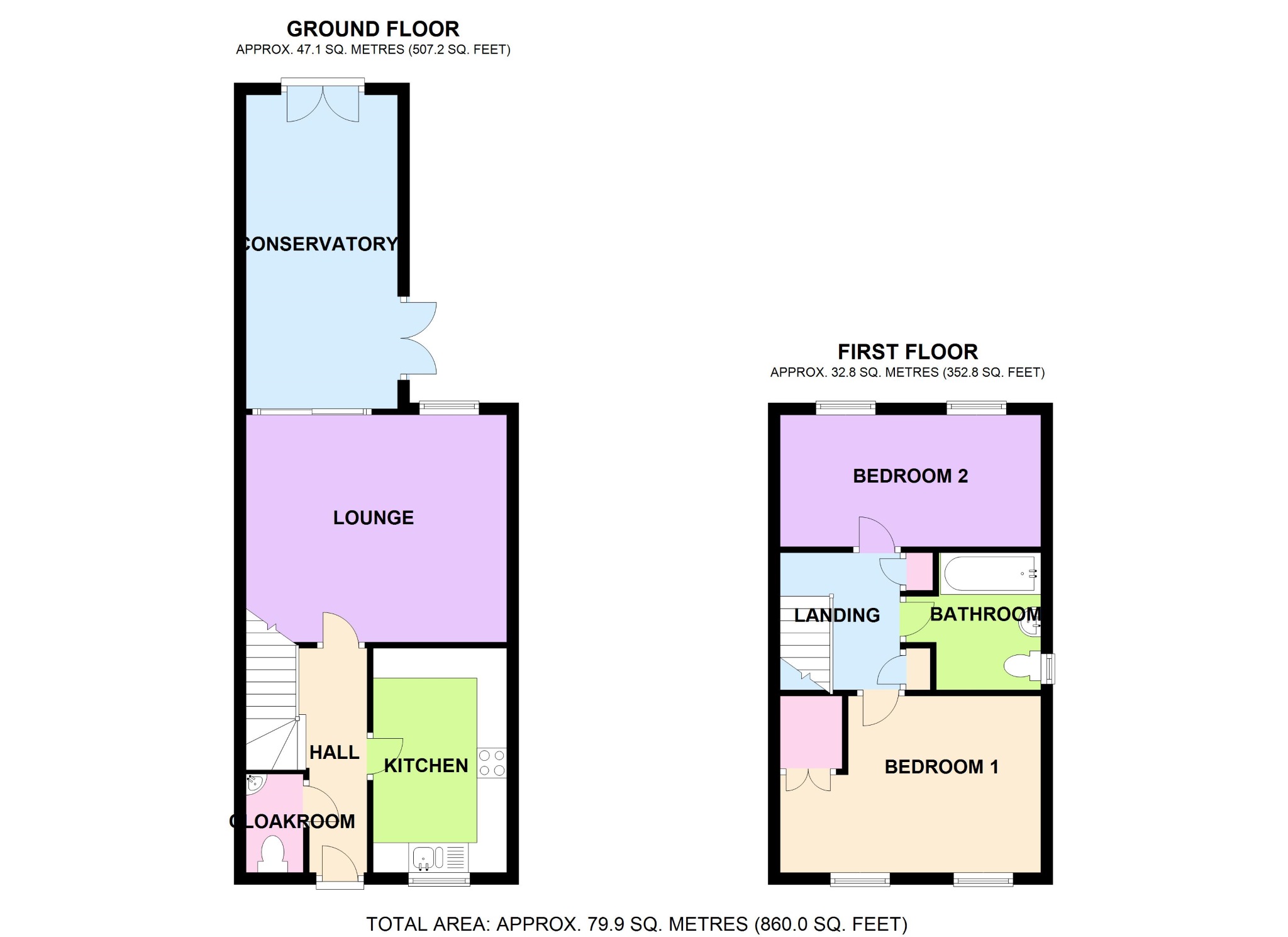 This well-presented property is approximately 79.9 sqm and comprises entrance hallway, cloakroom, fitted kitchen, spacious lounge and a large conservatory to the ground floor. The first floor offers two double bedrooms and a family bathroom. To the front of the property are two allocated parking spaces. The landscaped rear garden is mainly laid to lawn with a timber garden shed.
