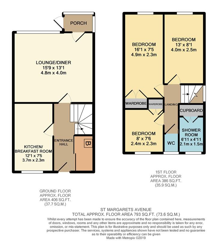 *Kitchen/breakfast room: 12'11" x 7'5"*Lounge/diner: 15'9" x 13'1"*Bedroom 1: 16'1" + wardrobes x 7'5"*Bedroom 2: 13' x 8'1"*Bedroom 3: 8' x 7'6"*Separate w.C.*Shower room: 6'11" x 4'11"*Rear garden: 46' approx*