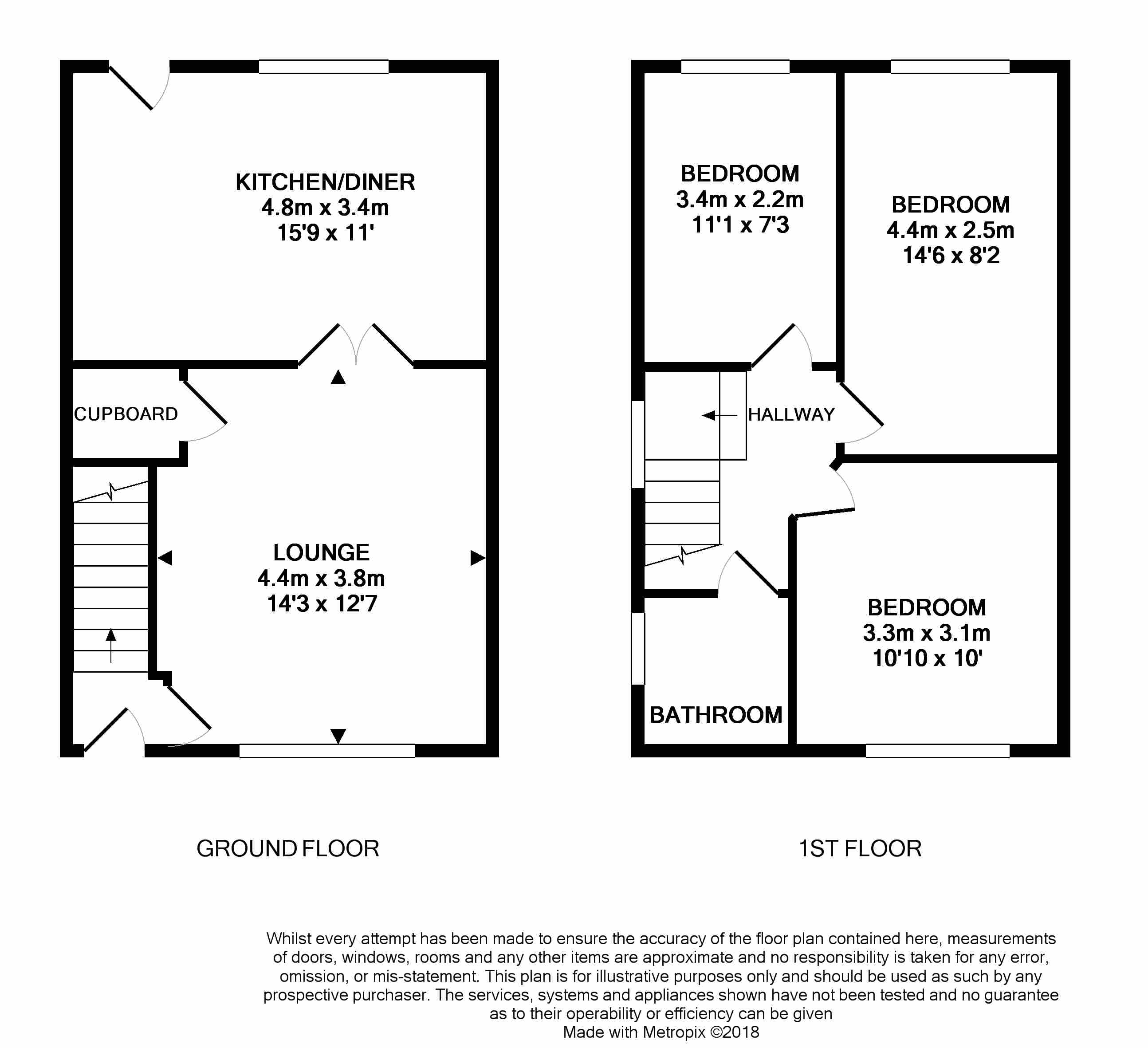 Gardens: To the front there is a space for off road parking. The rear garden is enclosedby fencing, lawned, flagged.