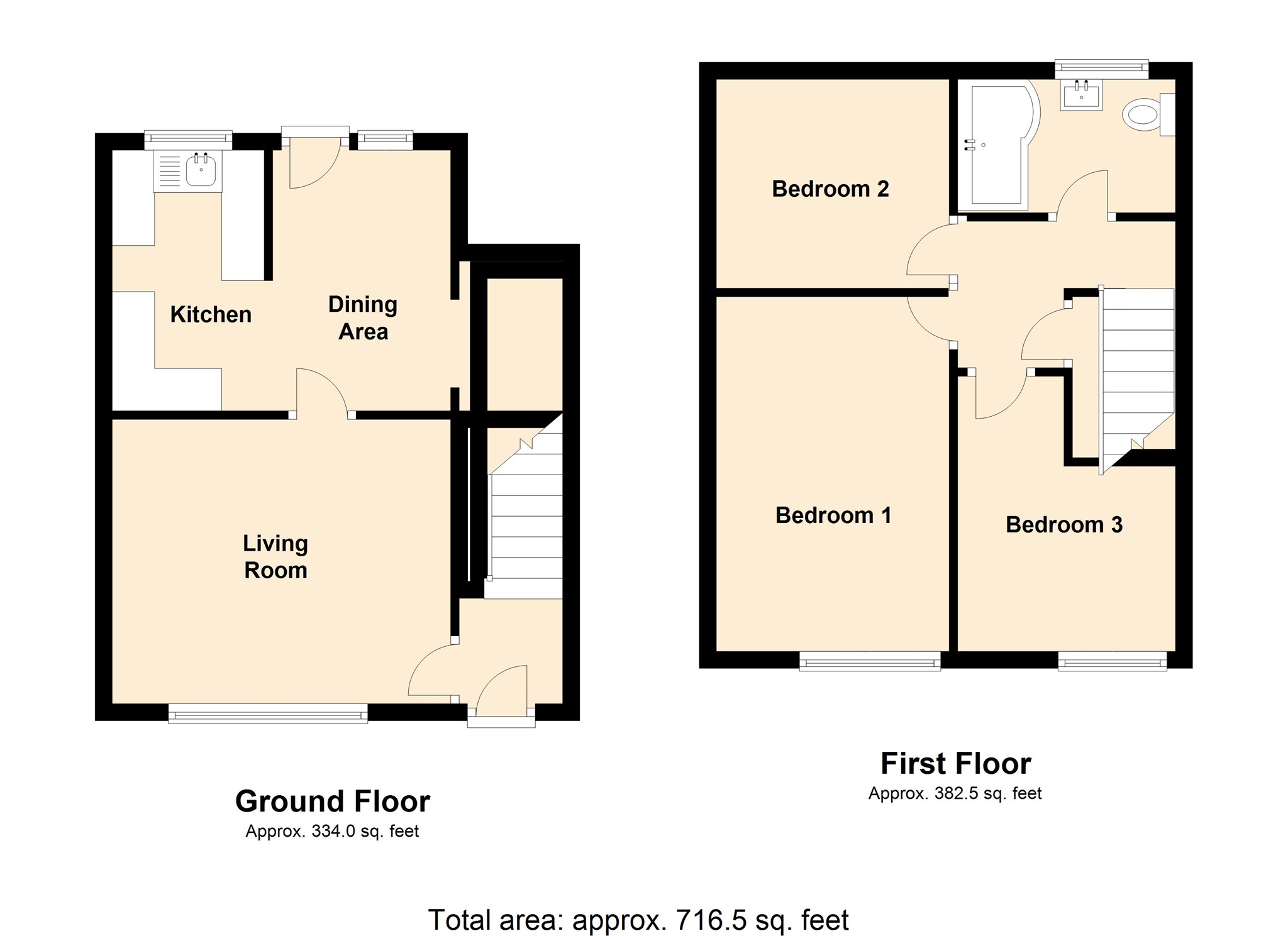 Vinyl Flooring, window to rear, tiled walls, three piece suite comprising of Wc, Hand basin and bath with shower over. Radiator