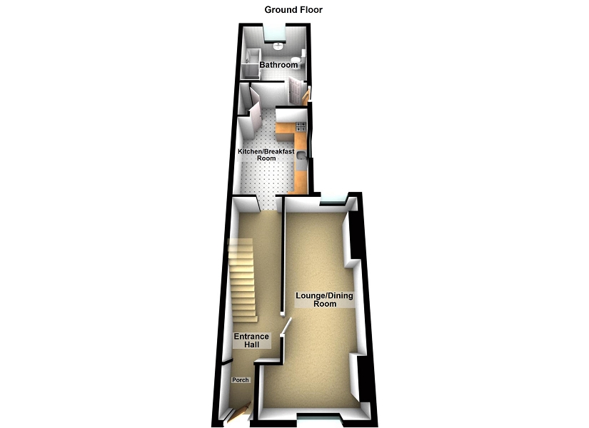 Radiator, laminate flooring, coving to ceiling, stairs to first floor.