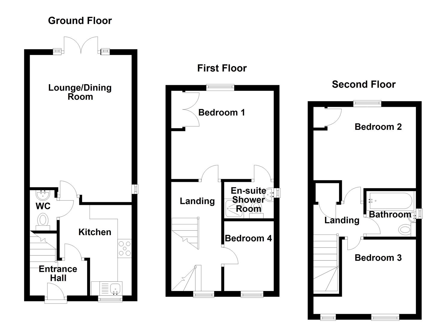 Having white suite of pedestal wash hand basin, close coupled W.C. And shower cubicle. Tiled flooring, ceiling down lighting, shaver point and wall mirror, extractor fan. Radiator and double glazed window to the side elevation.