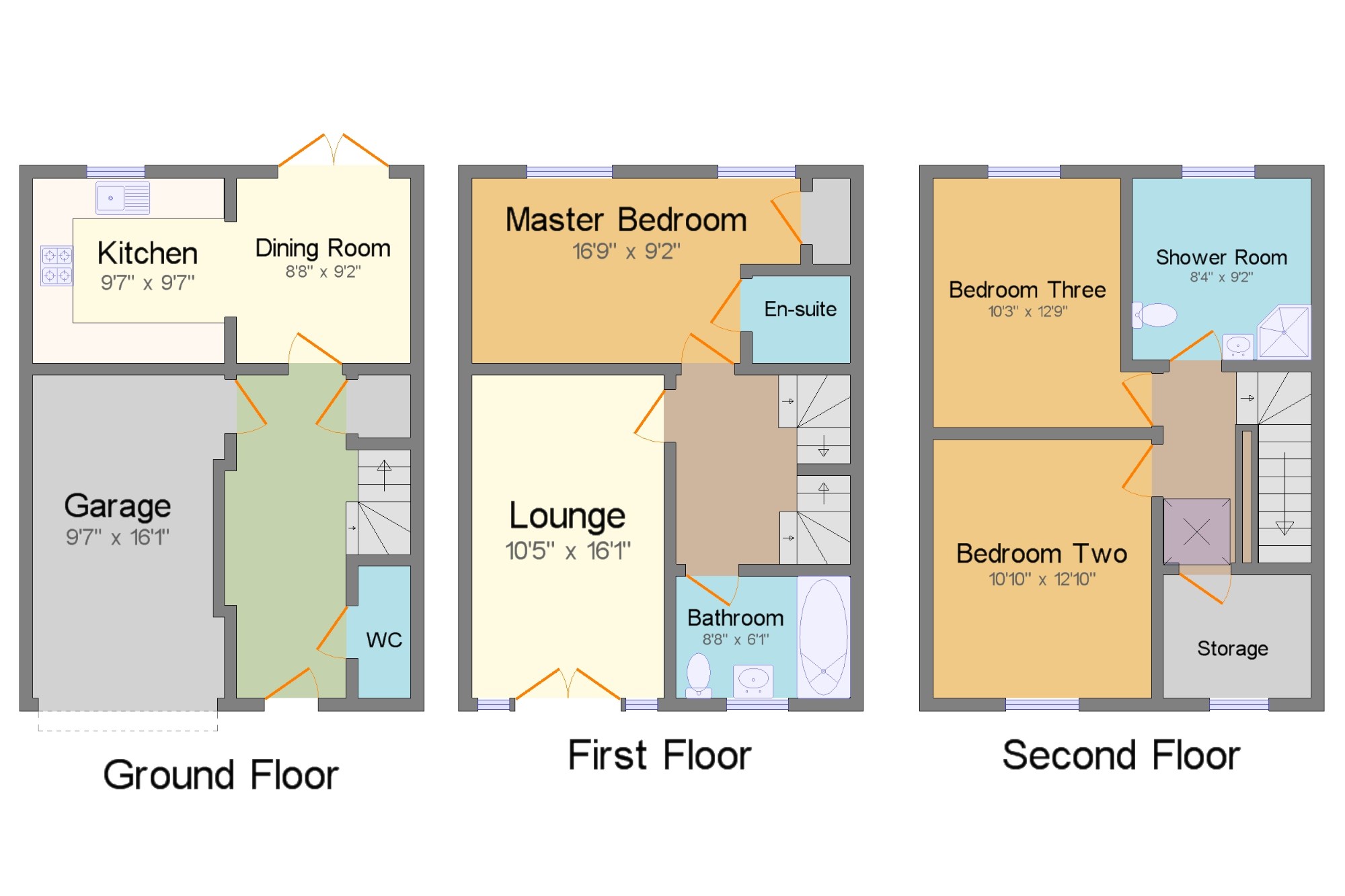 This well-presented end of townhouse offers plenty of space over three stories. On the first floor there is a spacious entrance hall, WC, integral garage and a bright kitchen diner with double doors leading out onto the rear lawned garden. To the first floor there is situated the master bedroom with en-suite, the great sized living room with a juilette balcony and family bathroom. On the top floor are a further two double bedrooms and an additional bathroom.