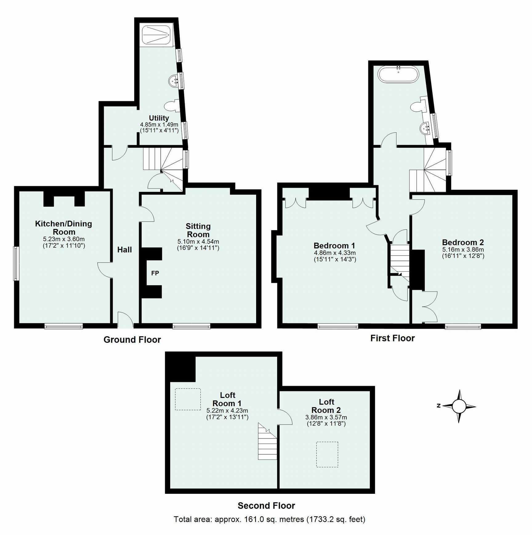 On the first floor are two large bedrooms with built in wardrobes and a lovely bathroom with a roll top bath. Stairs lead up to the second floor where there are two loft rooms which add to the already generous accommodation.