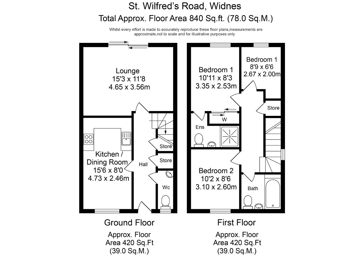 8' 5'' x 10' 11'' (2.57m x 3.35m) UPVC double glazed window to rear aspect. Built in double wardrobes with sliding doors. Door to En-suite. Fully carpeted with power and light.