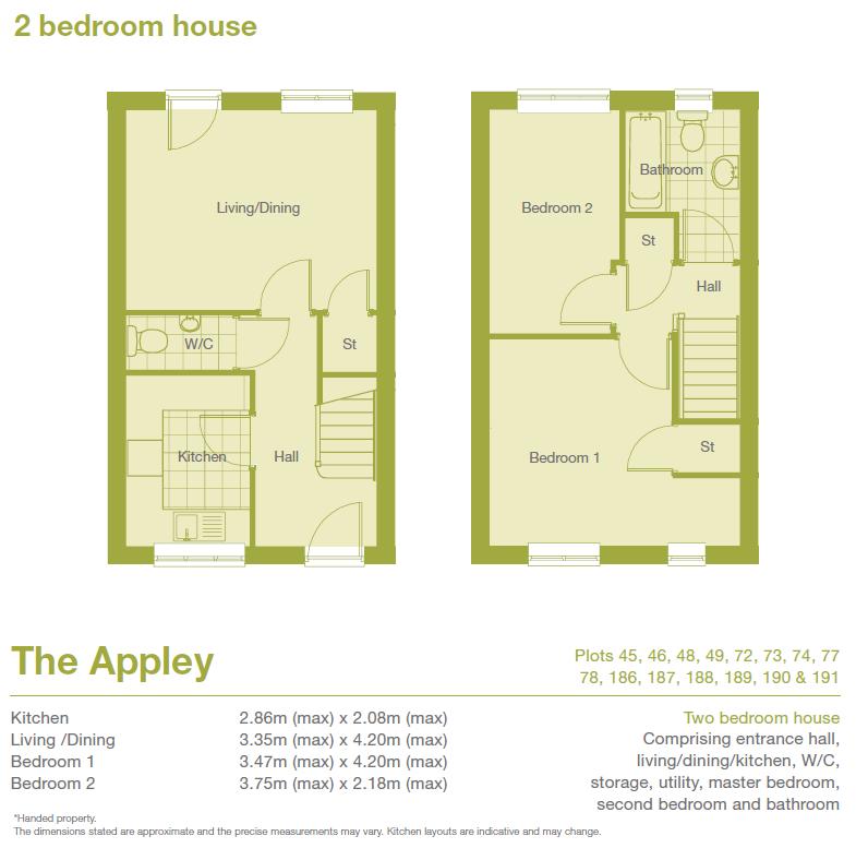 The Appley is a two bedroom end terraced house with one parking space. The property affords a practical floor plan with well-proportioned living areas that begin with a welcoming hallway. The kitchen has a range of modern fitted units with integrated oven and hob with extractor over. There is a good-sized two-piece bathroom with hand basin and low flush wc. To the rear of the property there is the bright and spacious living/dining room with rear facing double glazed window and door leading to the rear garden.