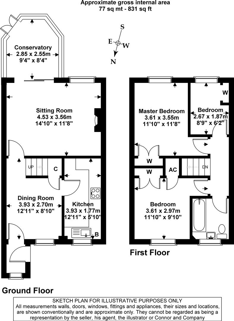 Accommodation comprises of entrance hall, dining room, sitting room, conservatory, kitchen, three bedrooms, family bathroom, south facing rear garden and off road parking.