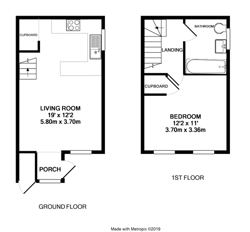 The ground floor accommodation an open plan living room which measures 19ft and leads to the rear aspect kitchen. To the first floor there's a spacious master bedroom benefiting from lots of natural light and a three piece bathroom suite.