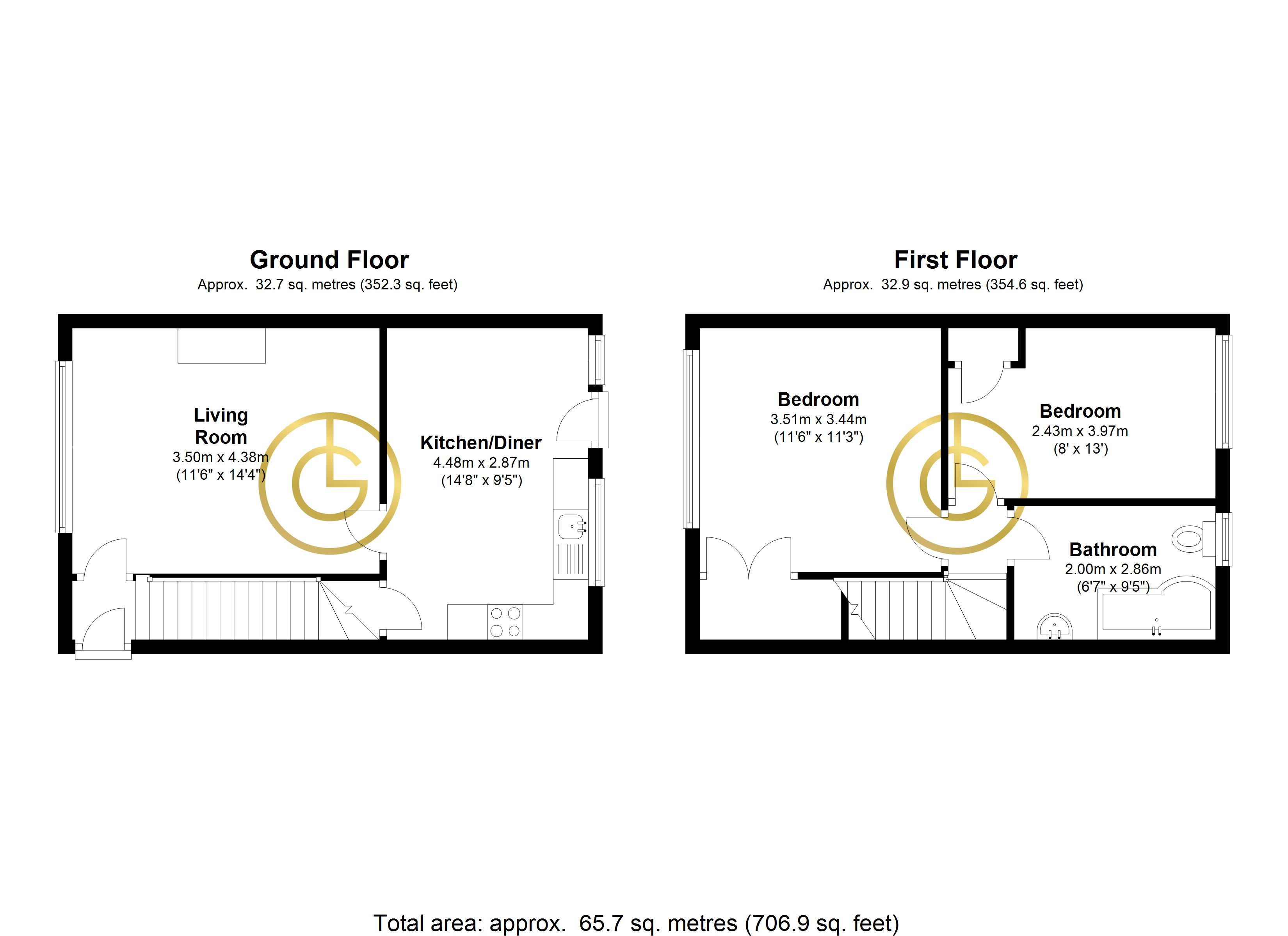 Bedroom two 9' 4" x 7' 11" (2.87m x 2.43m) A good sized second bedroom which is will decorated and has a double glazed window over looking the rear garden.