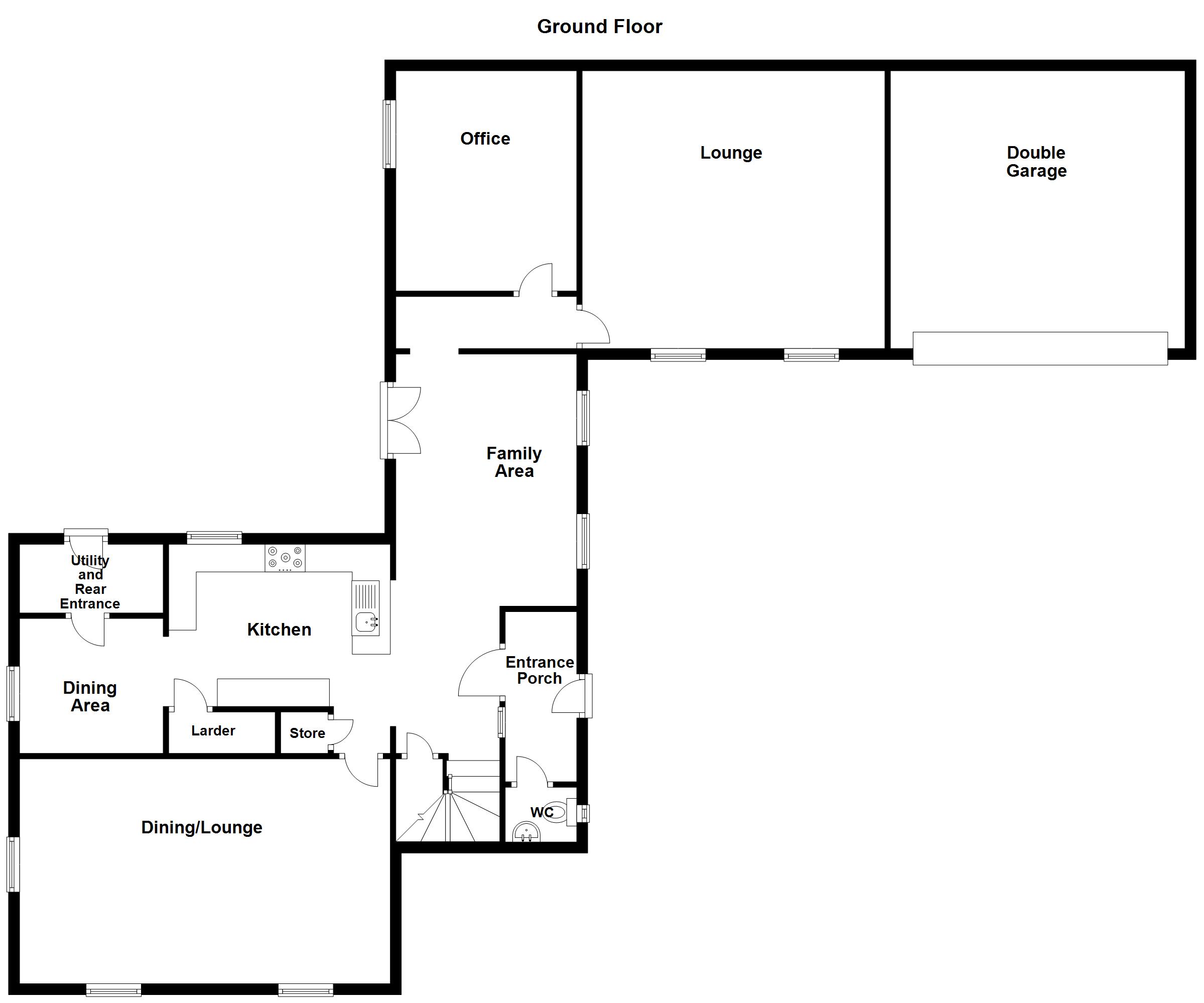 Kitchen 13' 2" x 11' 4" (4.03m x 3.46m) Fitted with a solid oak bespoke kitchen complete with contrasting work surfaces and integrated appliances including: Smeg ovens and hob, dishwasher and fridge/freezer. Tiled floor. Inset spotlights. Window to the rear elevation. Store cupboard. Large larder cupboard. Internal door leads through to Dining Room/Lounge. Open to: