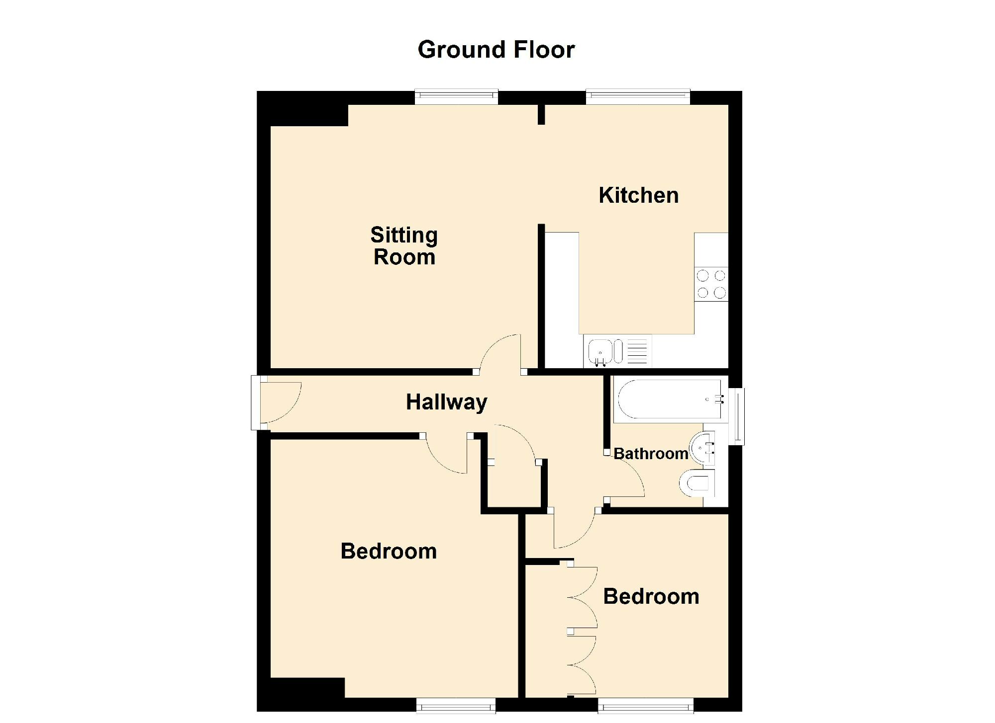 Hardwood double glazed window providing a pleasant outlook to the Mendip Hills, useful fitted storage cupboards providing ample storage space, corniced ceiling and night storage heater.