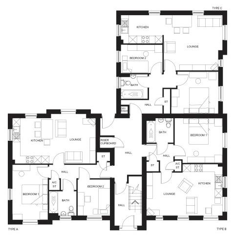 Natural light floods through this two bedroom Aspen apartment. A spacious home featuring open plan living area and a fully fitted kitchen. The Aspen also features a double bedroom, a single bedroom and a family bathroom.