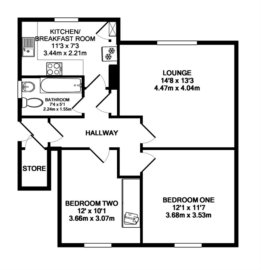 bedroom two 12' x 10' 1" (3.66m x 3.07m)