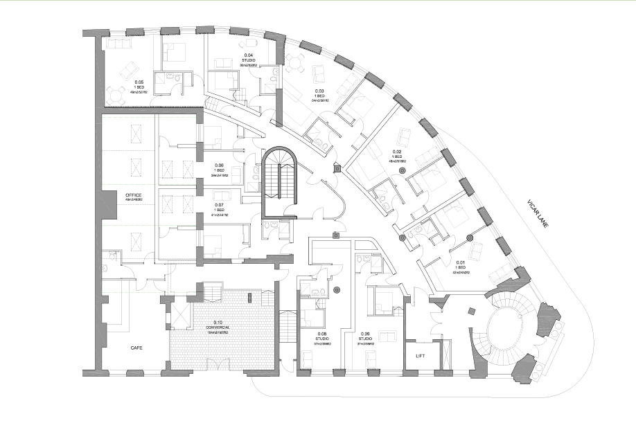 Law Russell House is made up of 65 spacious apartments, over 6 floors comprising of 1 bed, 2 bed duplex and studio apartments. There are also excellent communal facilities such as a basement gym and café area providing a high-end residential experience for all.