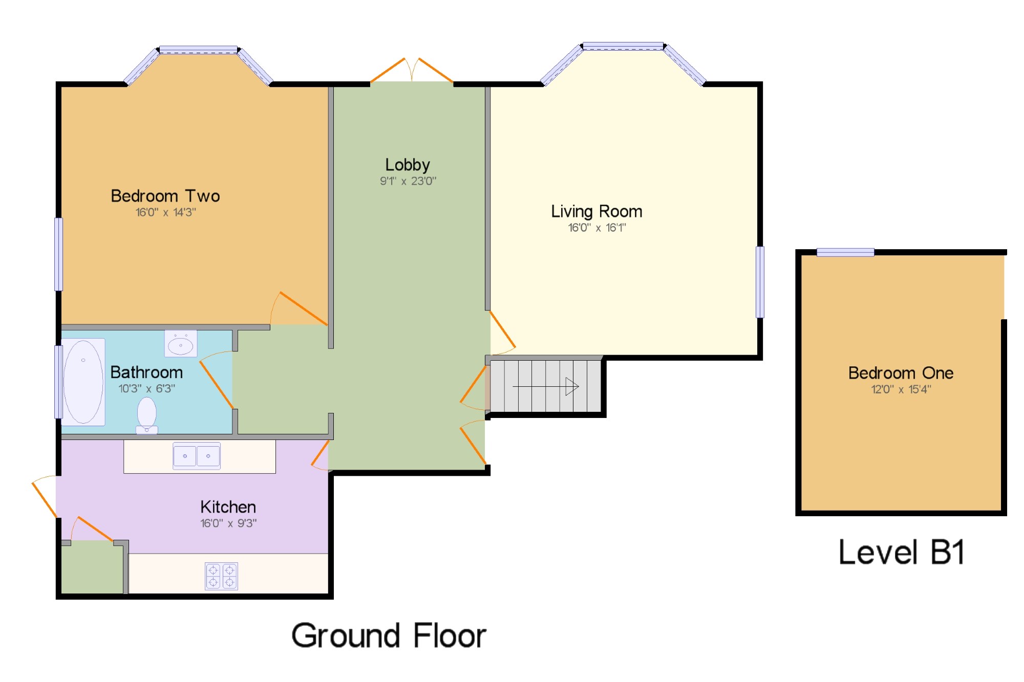 Bedroom Two16' x 14'3" (4.88m x 4.34m). Double glazed uPVC bay window facing the front. Radiator, engineered wood flooring.