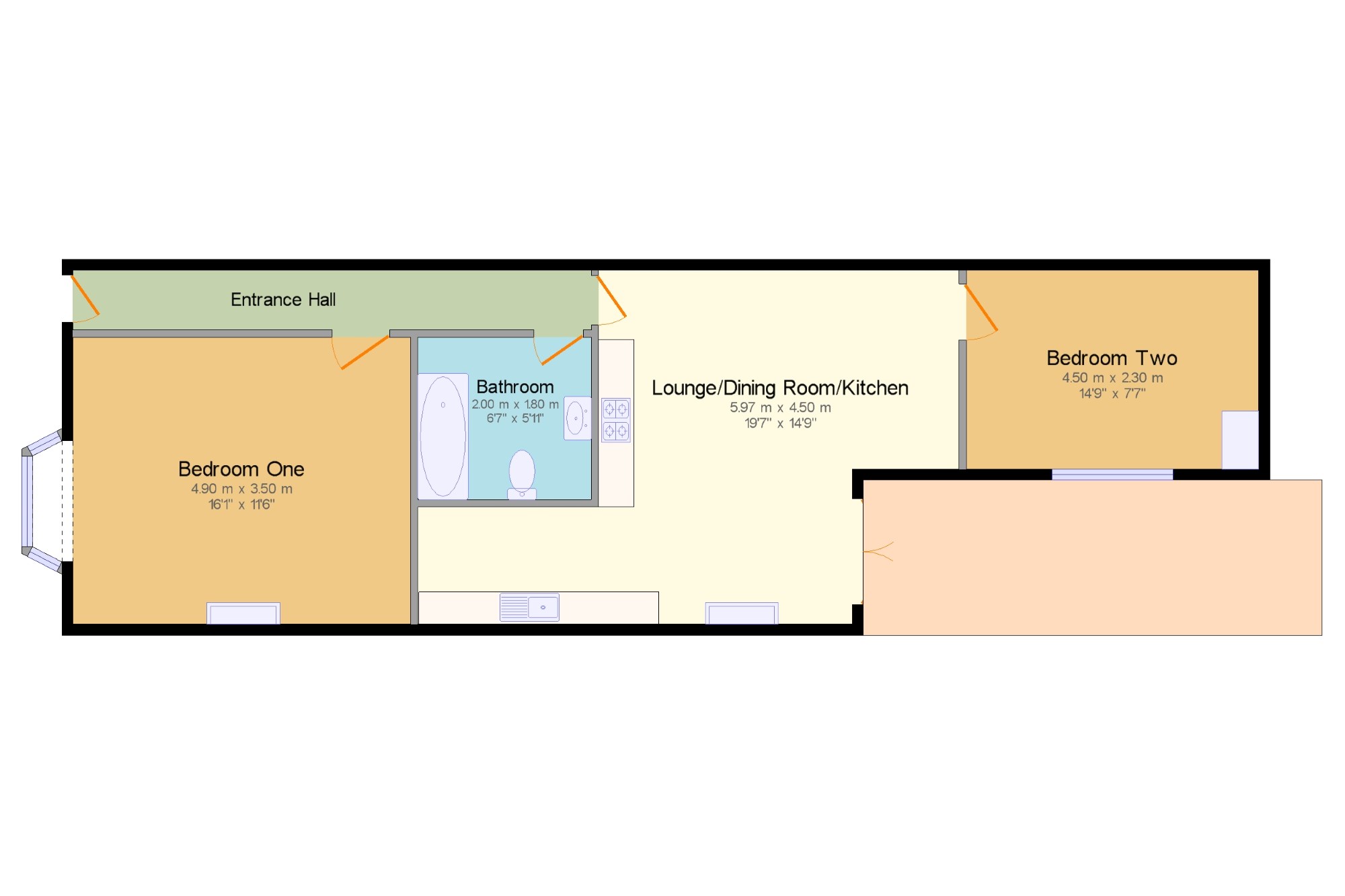 Bedroom Two14'9" x 7'7" (4.5m x 2.31m).