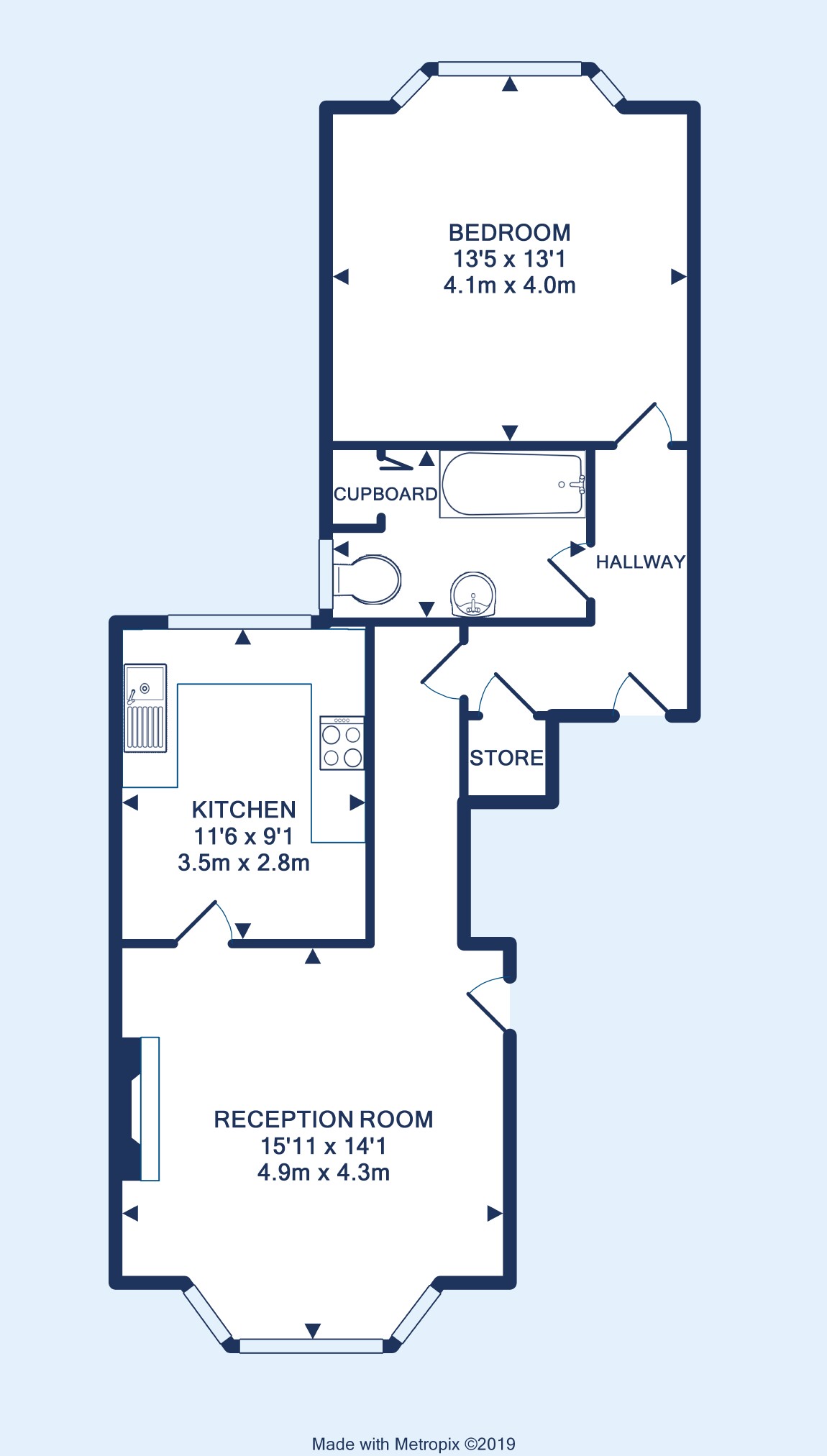 Attractively presented, the large living room is lovely and bright with a gorgeous fireplace, bay window and very high ceilings. The kitchen is also a good size and fitted with modern units which provide ample storage and plenty of work space. The bedroom, again with a bay window, is a generous double whilst the bathroom has a practical three piece white suite.