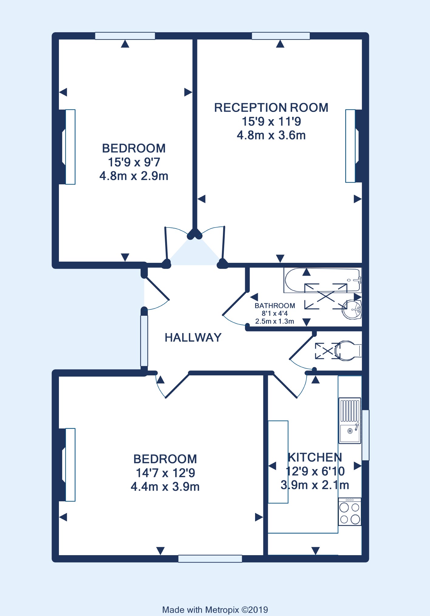 The generous living space is wonderfully bright with high ceilings and a lovely feature fireplace. Both bedrooms are extremely good size doubles and ideal for anyone wanting to accommodate a flatmate. The kitchen is again a good size with plenty of cupboard and worktop space.