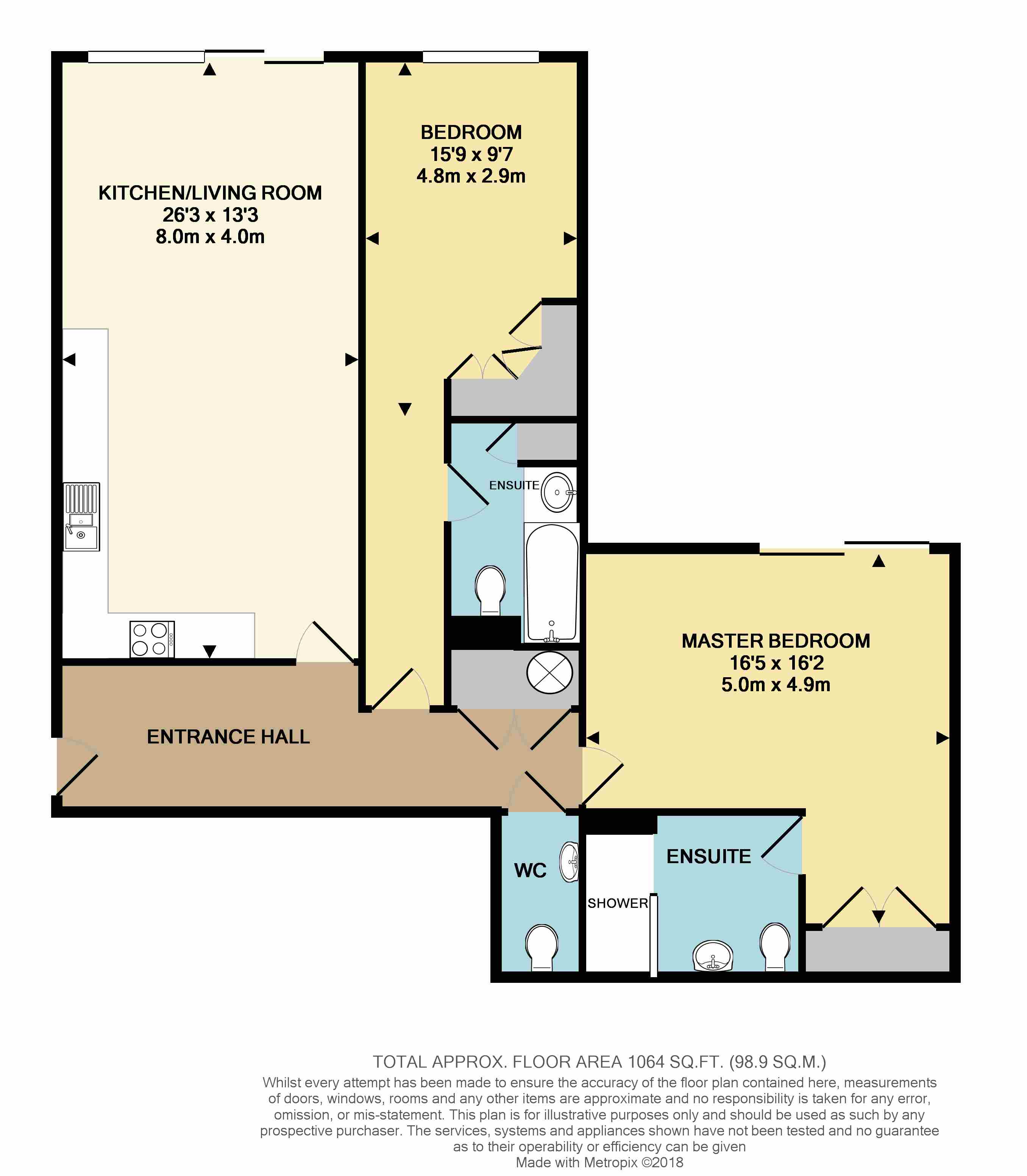A sliding door opens onto the patio area which is surrounded by a hedge for privacy. Both bedrooms are generous sizes and include built in wardrobes. The master bedroom also includes a sliding door so the communal gardens can be accessed and both bedrooms have their own en-suite bathrooms. The property also includes a gated allocated parking space.